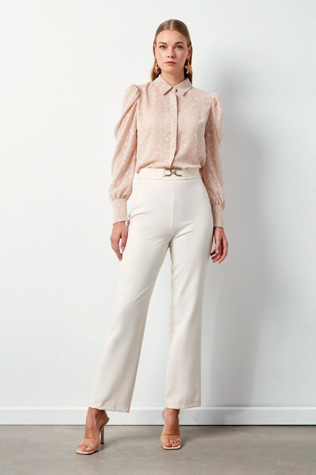Bel Aksesuarlı Pantolon - Ekru