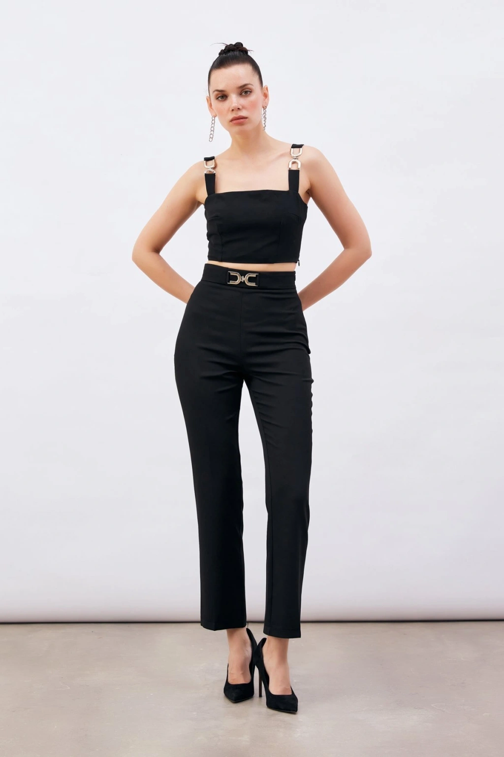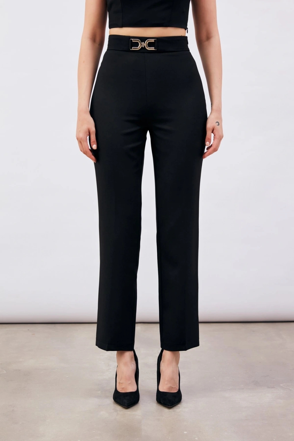 Bel Aksesuarlı Pantolon - Siyah