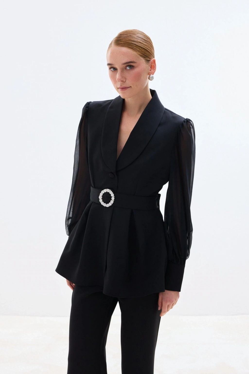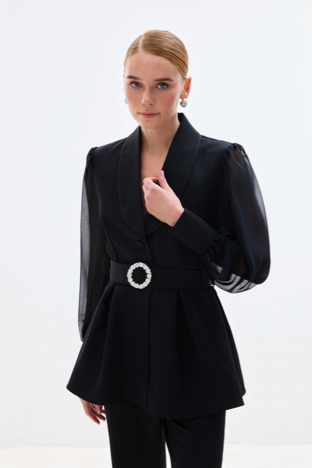 Toka Aksesuarlı Anvelop Bluz Siyah