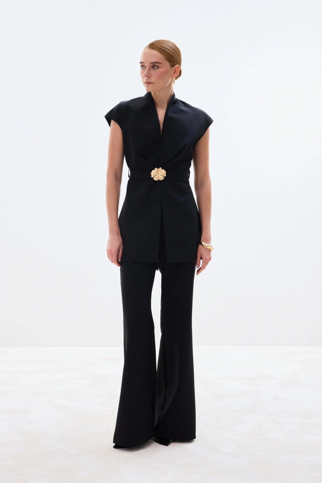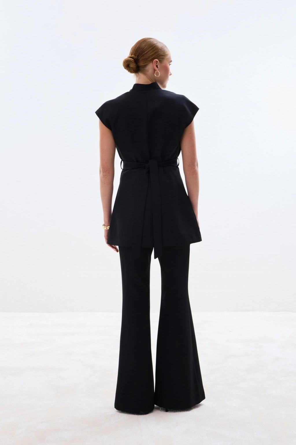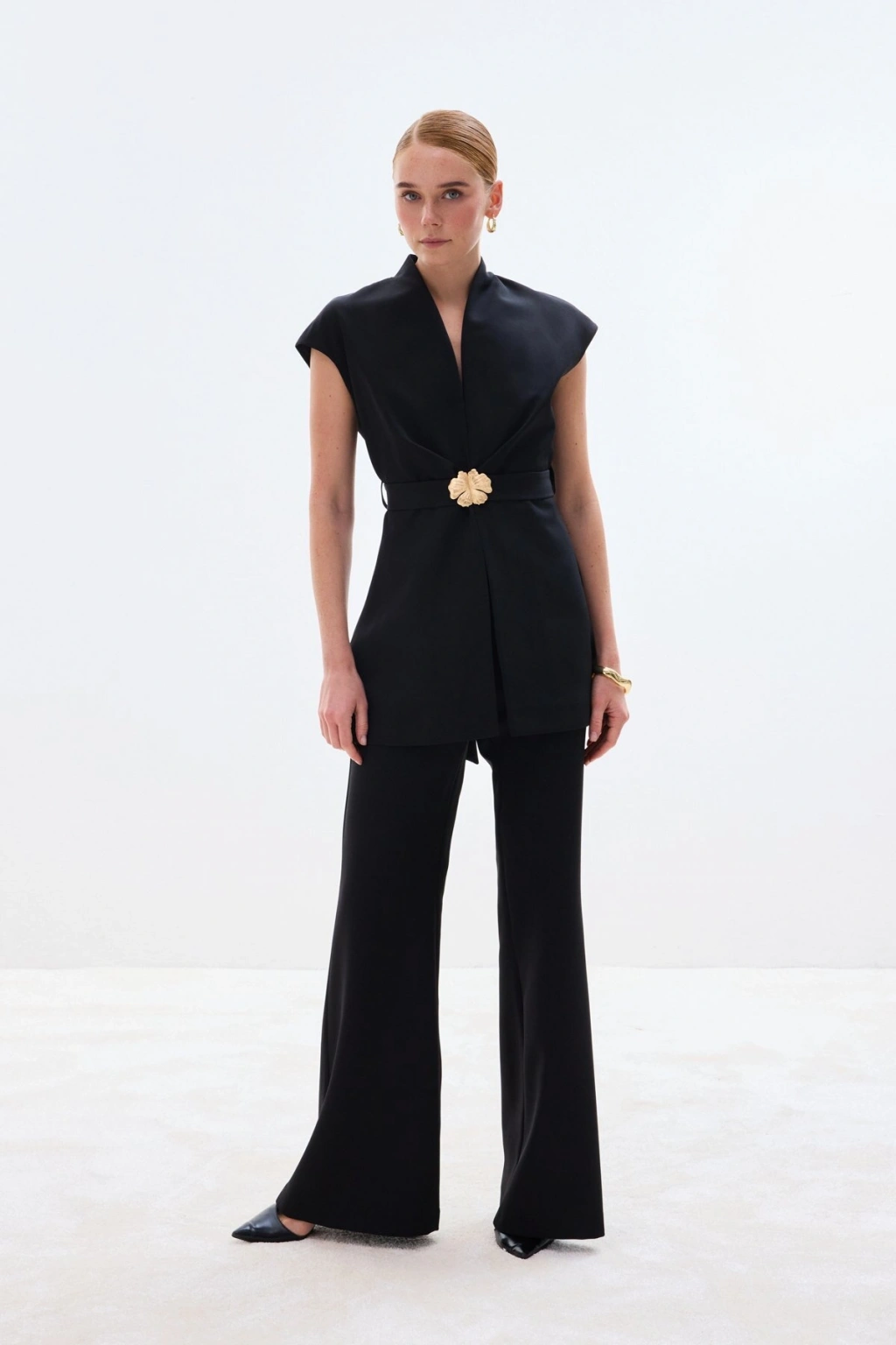 Aksesuar Kuşaklı Kolsuz Bluz - Siyah