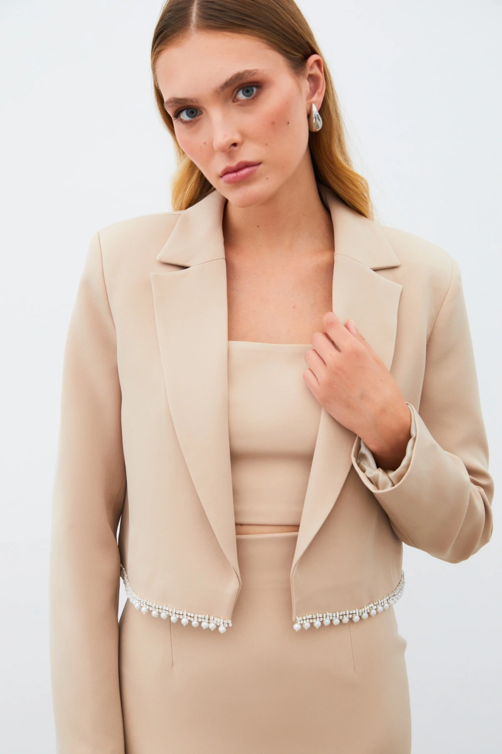 Gömlek Yaka Fermuarlı Kısa Ceket Gri