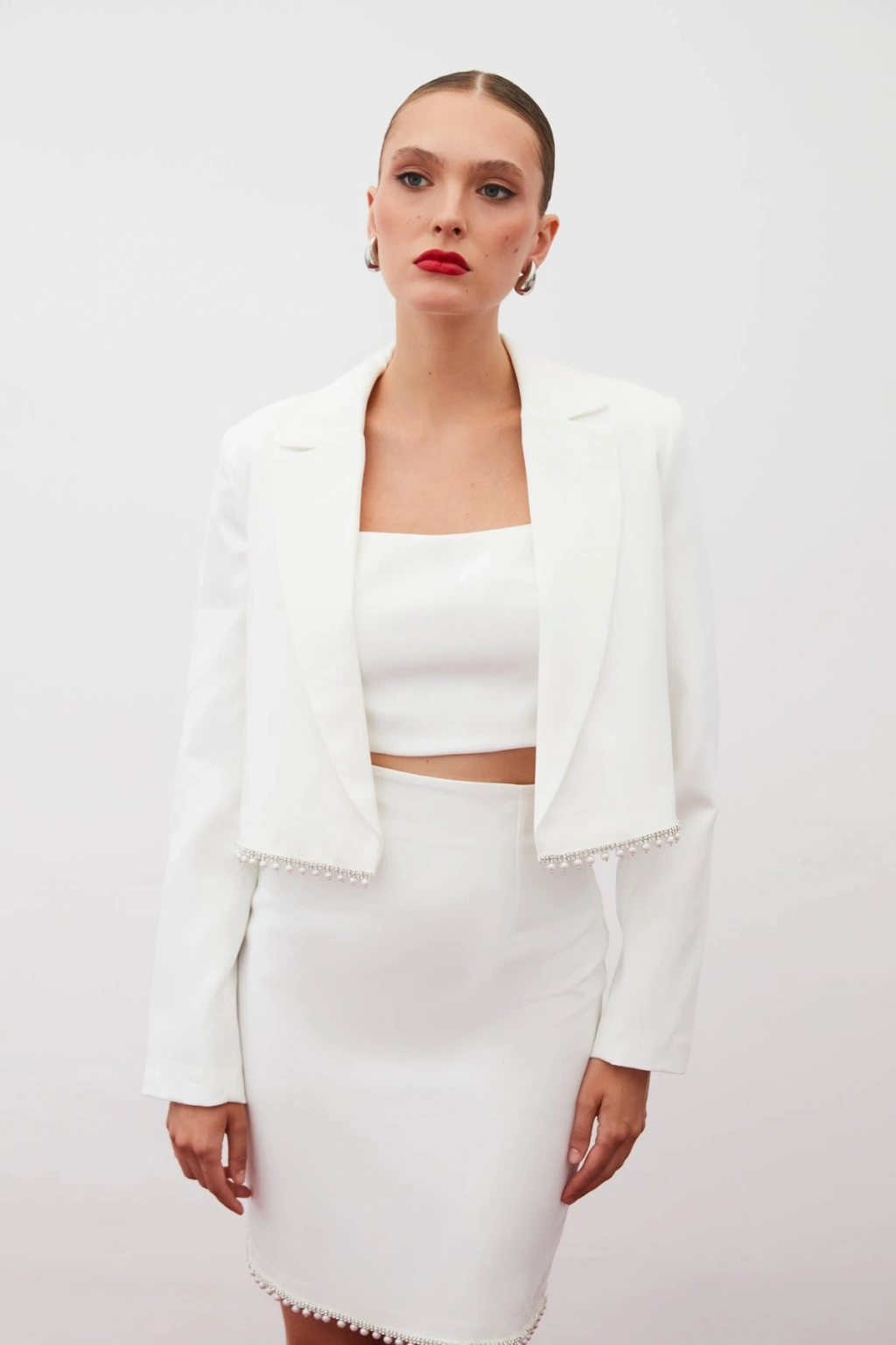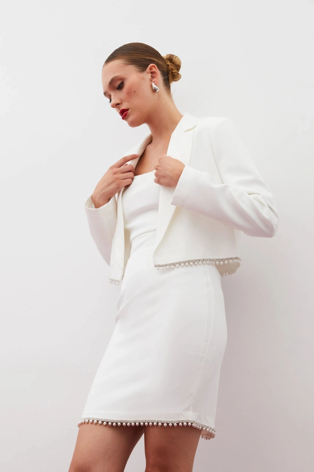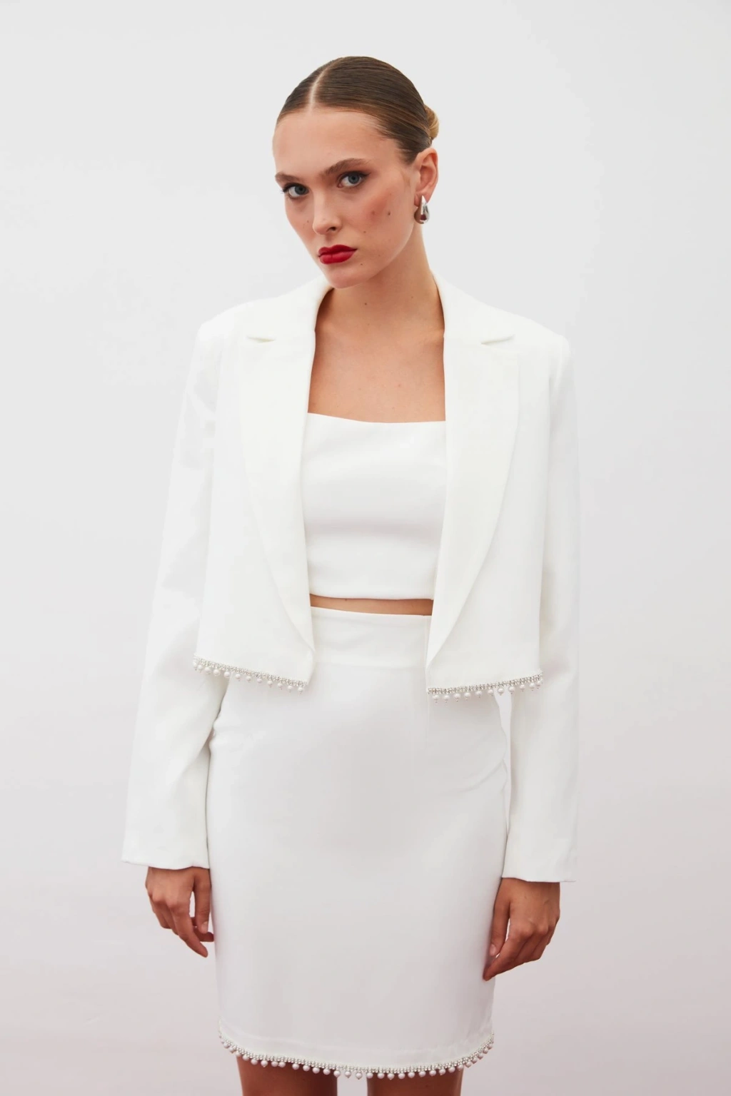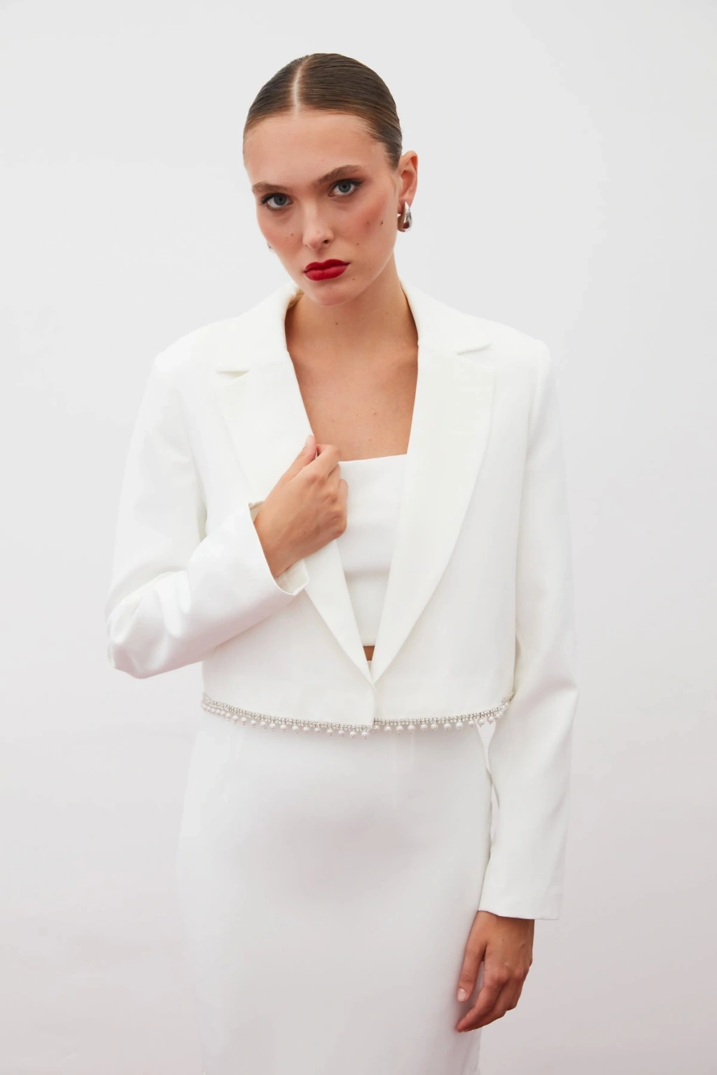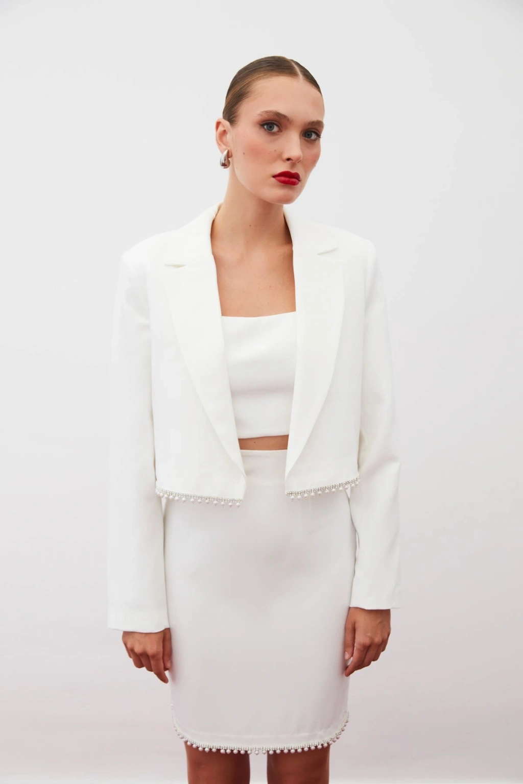 Gömlek Yaka Fermuarlı Kısa Ceket Gri