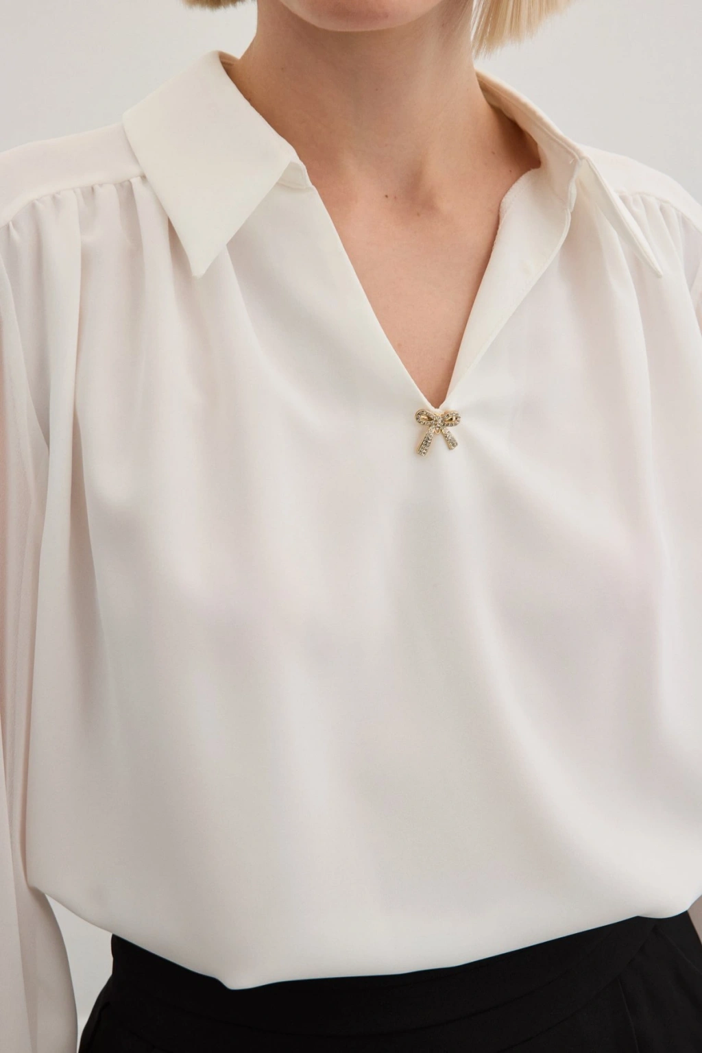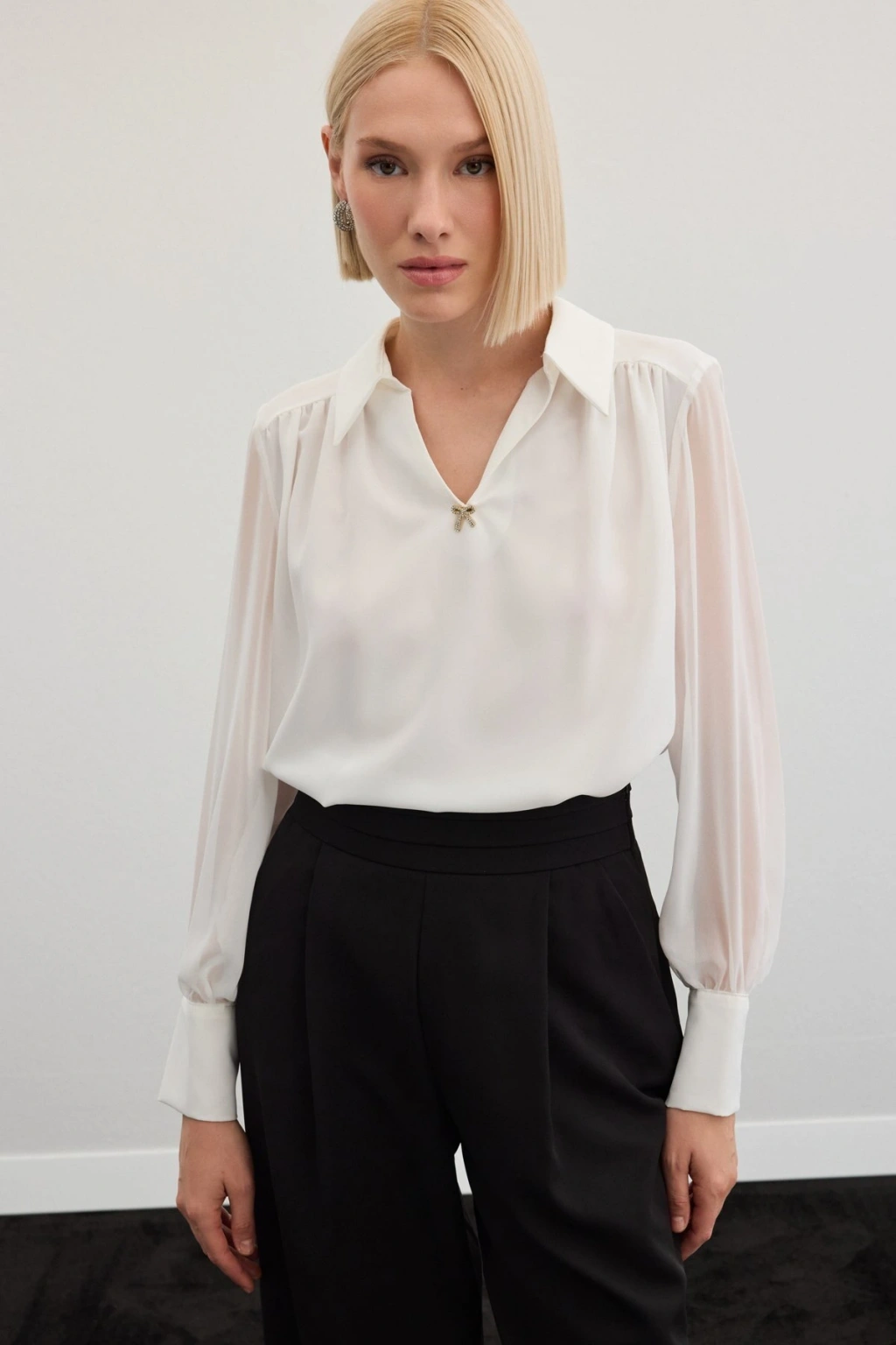 Aksesuarlı Salaş Bluz - Ekru