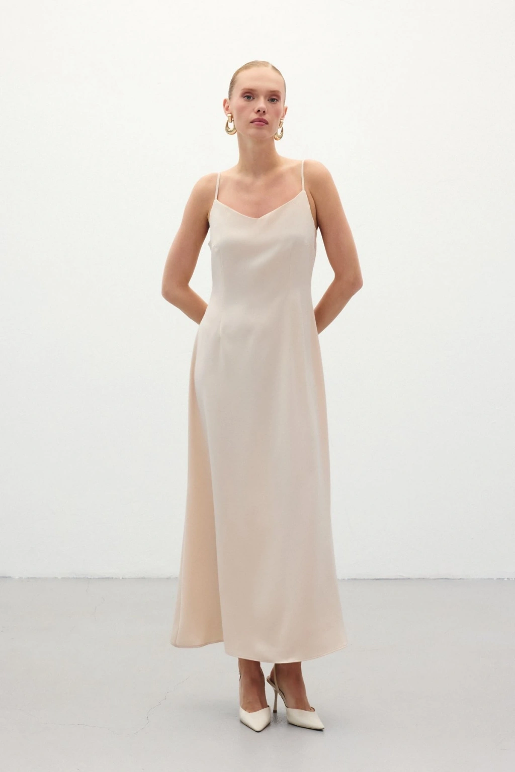 Düğme Aksesuarlı Straplez Elbise - Ekru