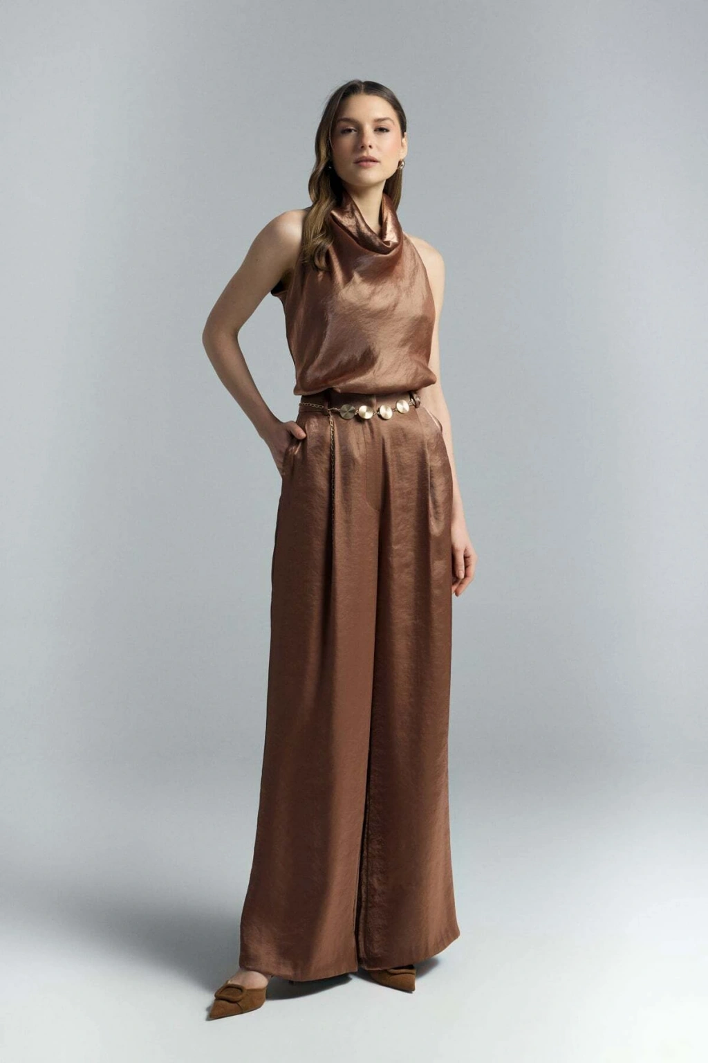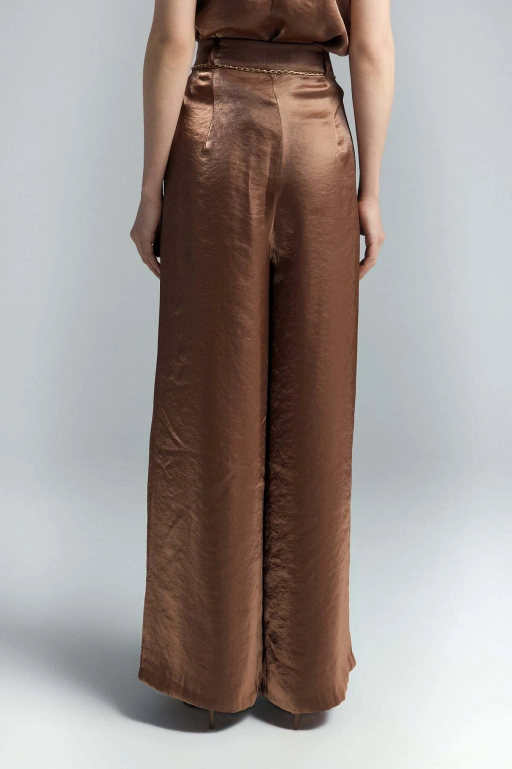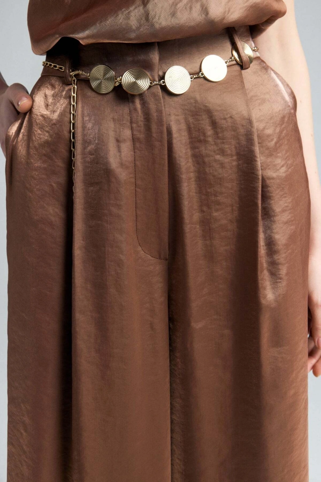 Kemer Detaylı Saten Pantolon - Taş