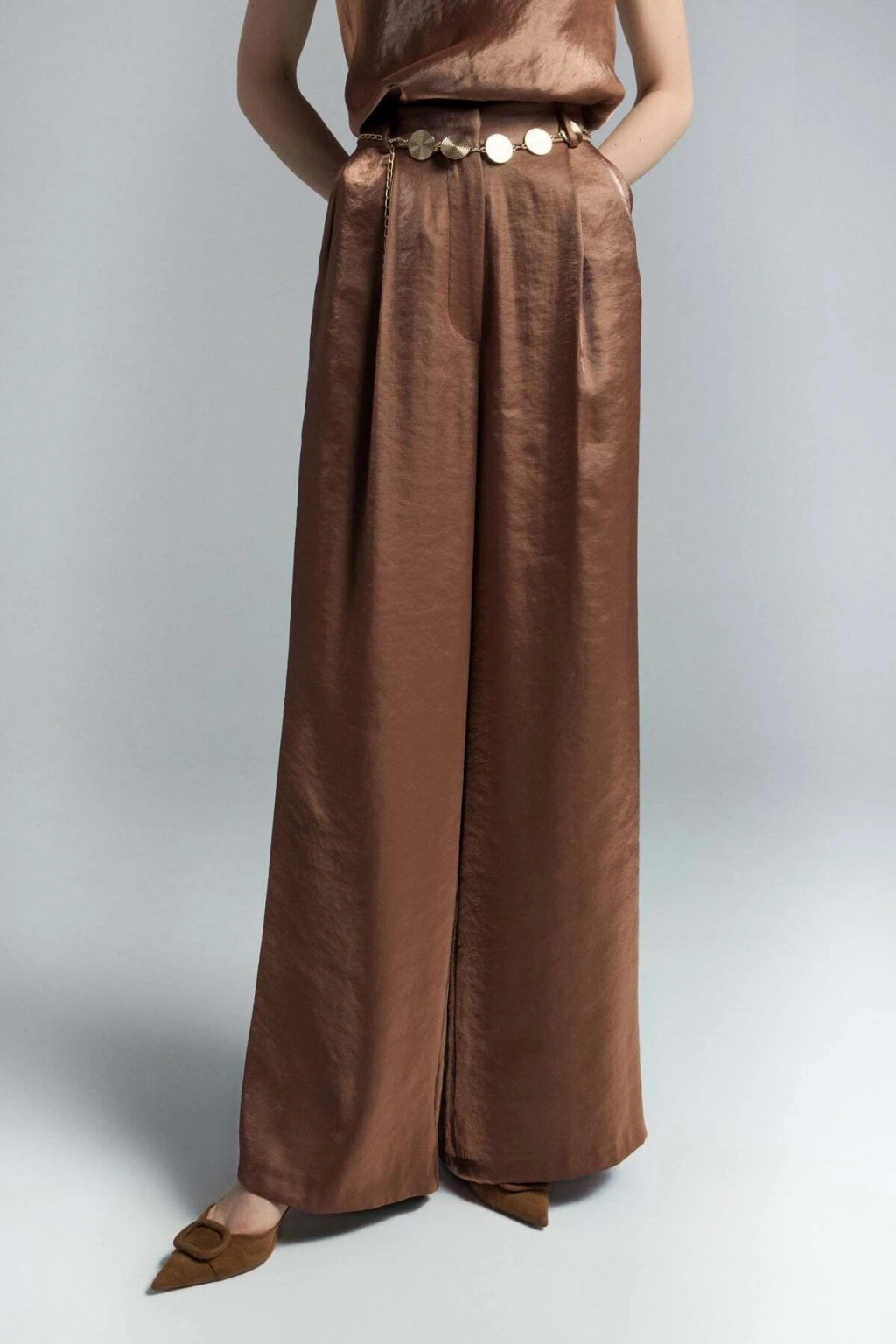 Kemer Detaylı Saten Pantolon - Vizon
