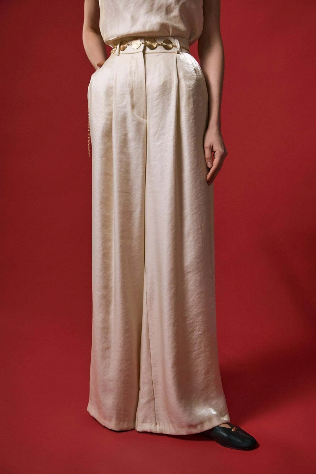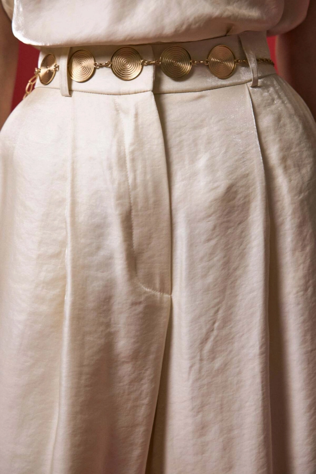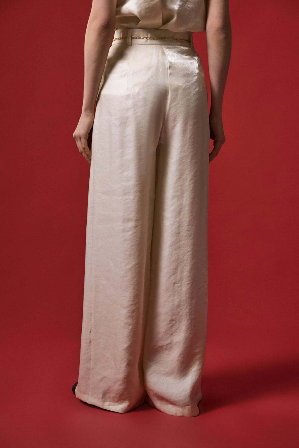 Kemer Detaylı Saten Pantolon - Taş