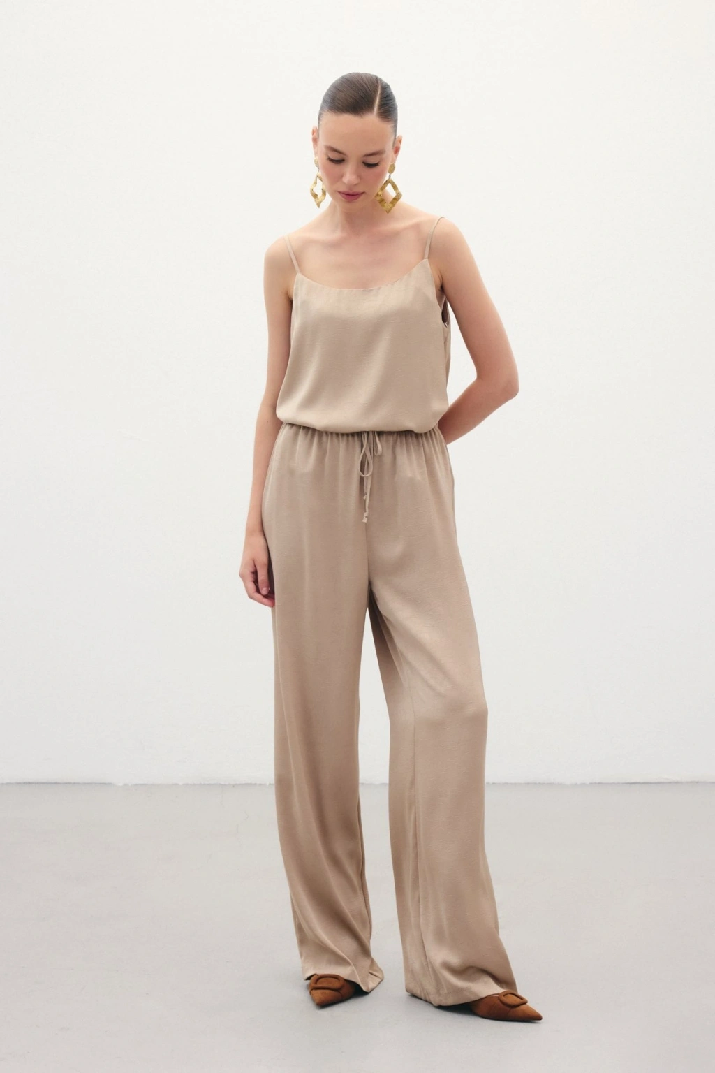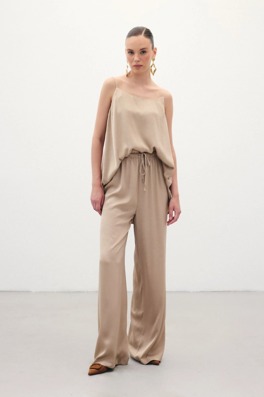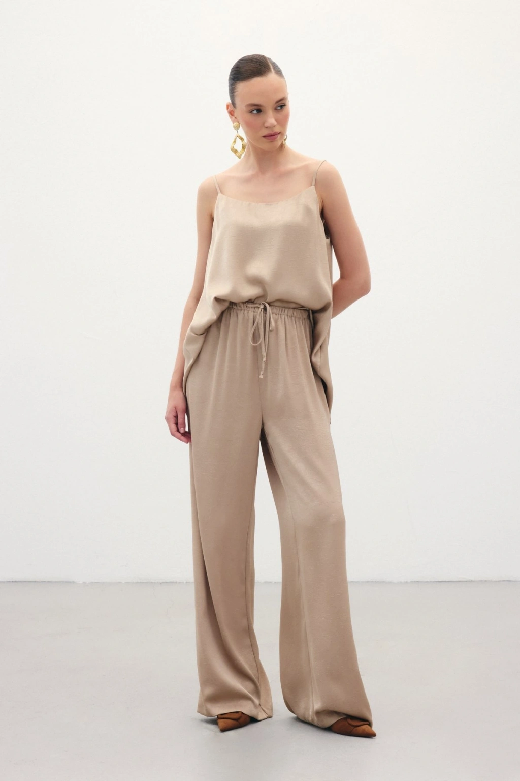 Lisa Saten Duble Paça Pantolon - Lacivert