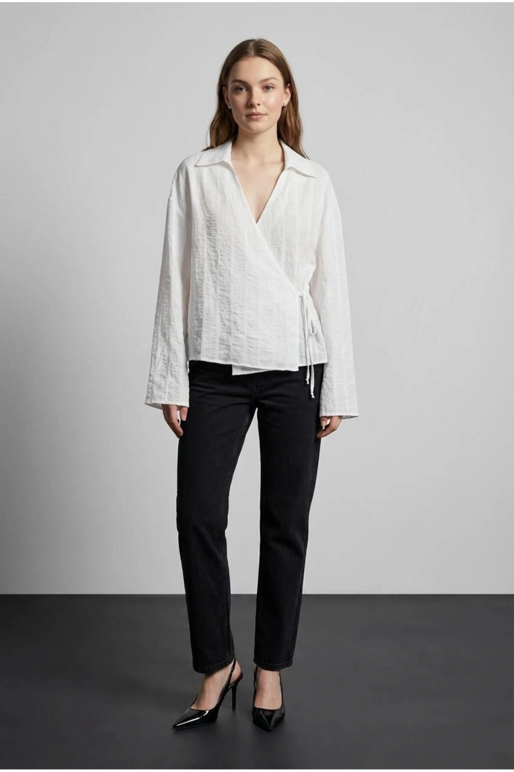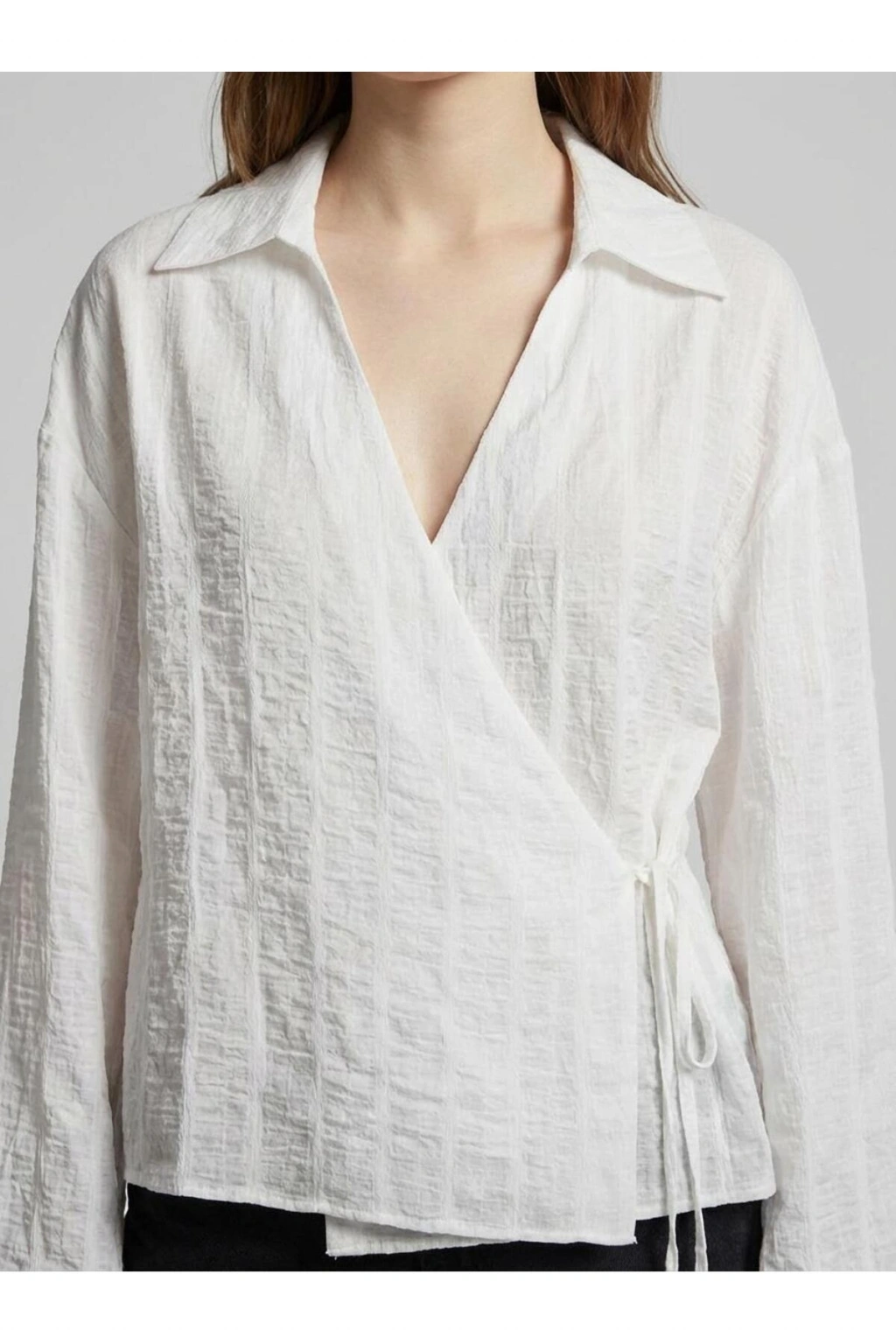 Bağlama Detaylı Kruvaze Bluz Ekru