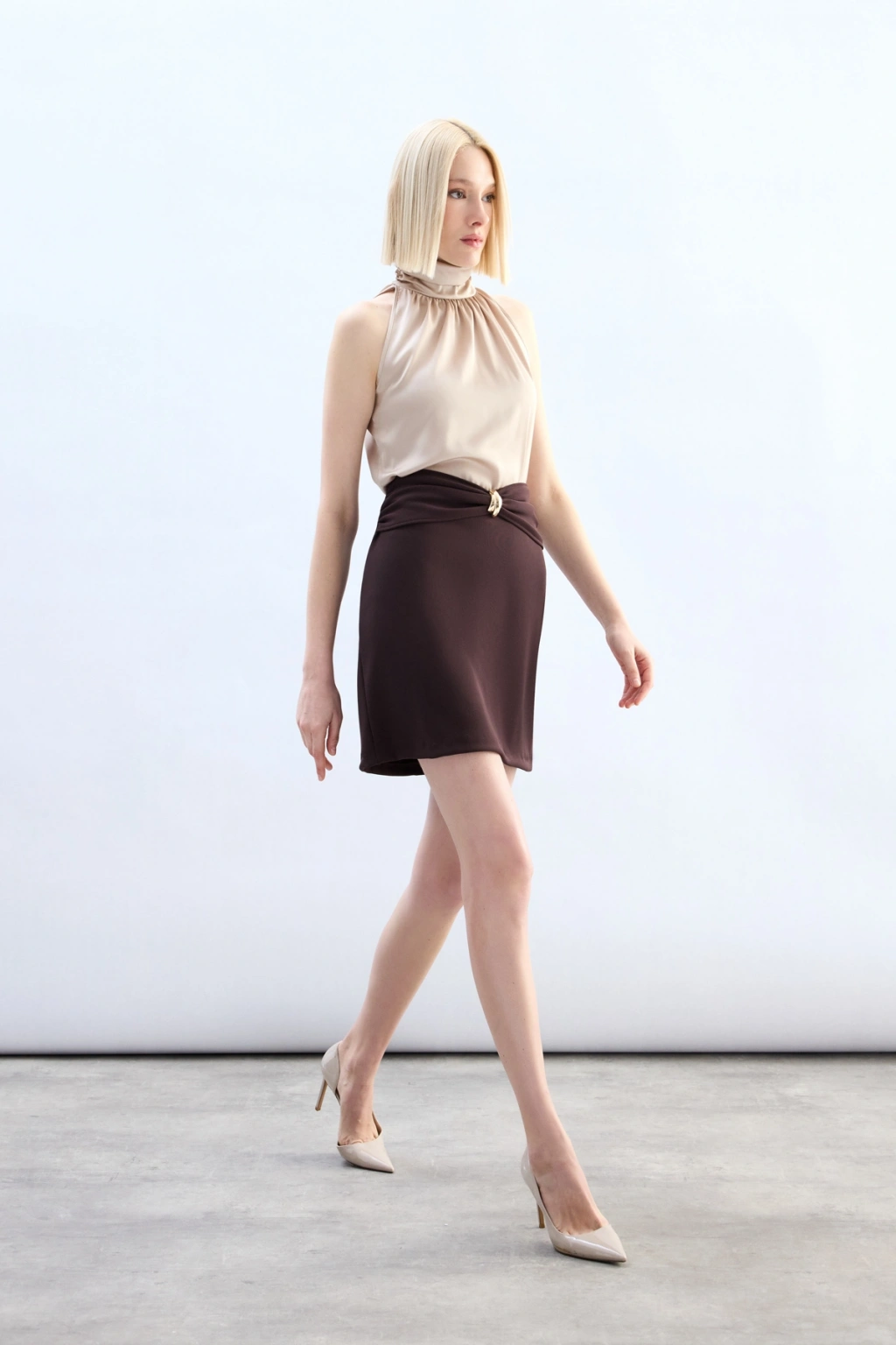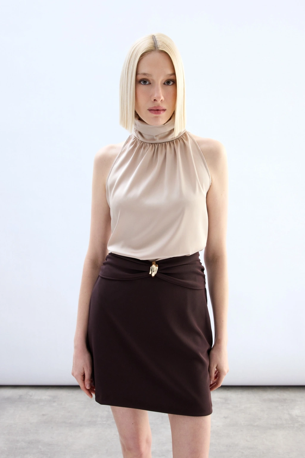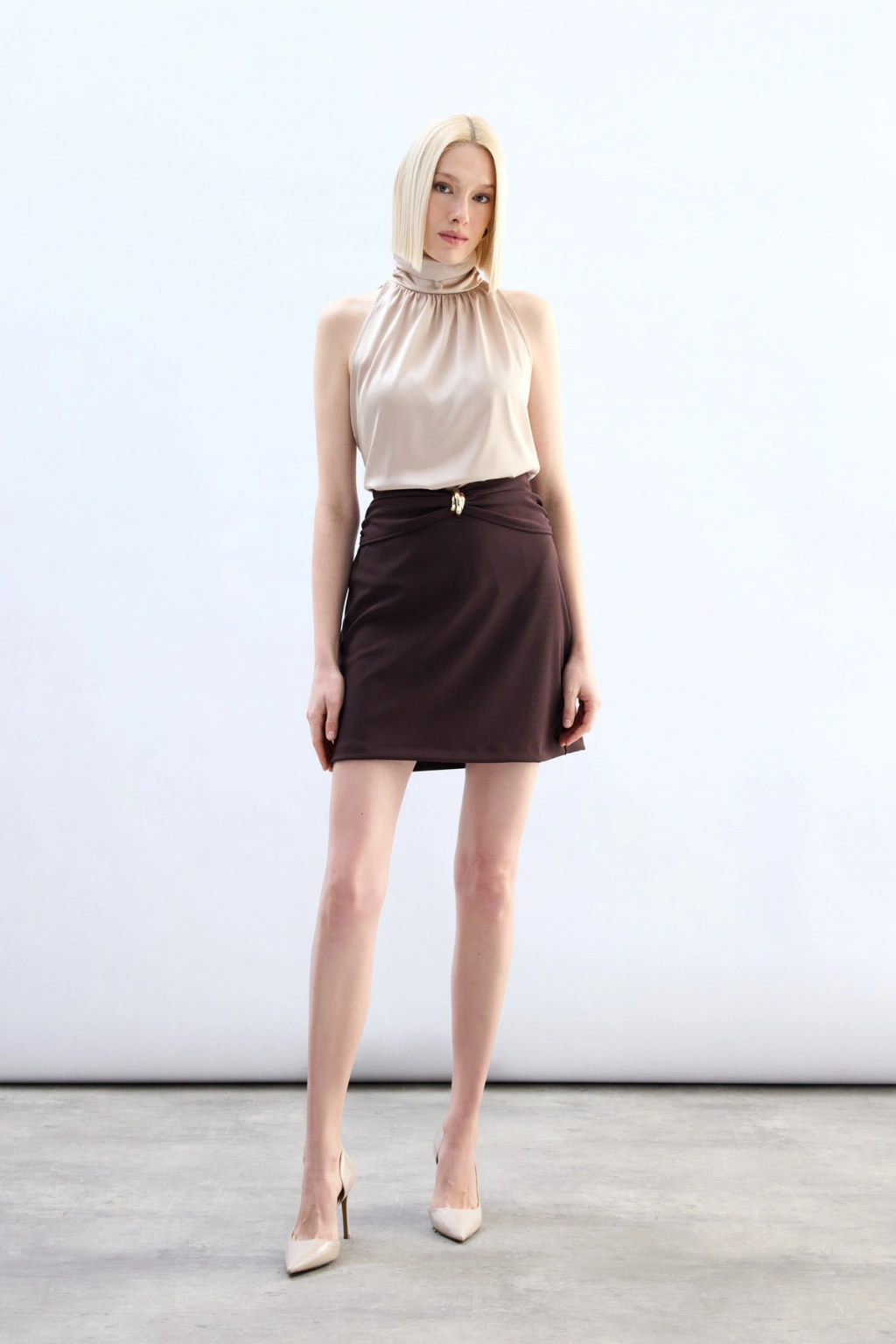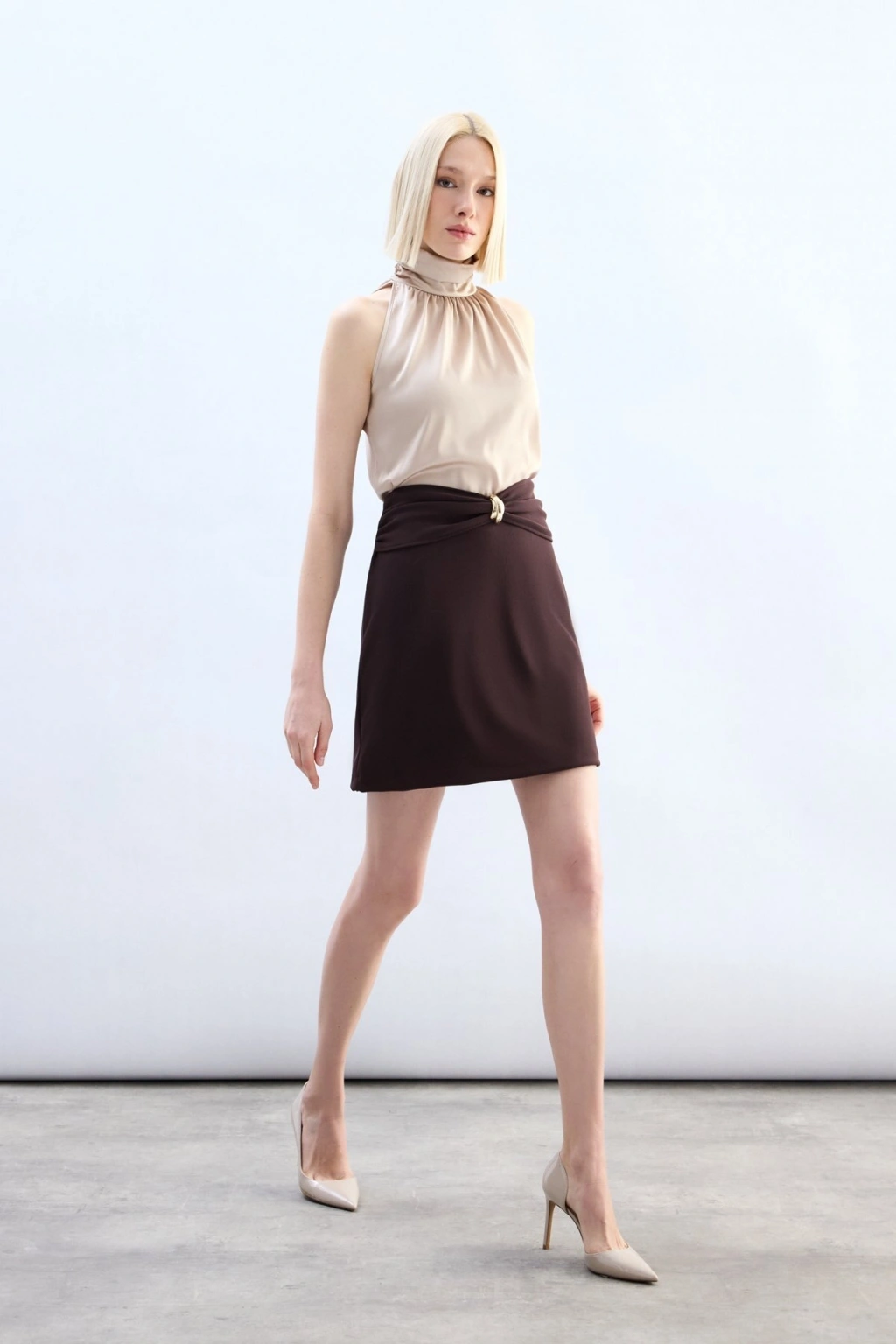 Bel Aksesuarlı Mini Etek - Kahve