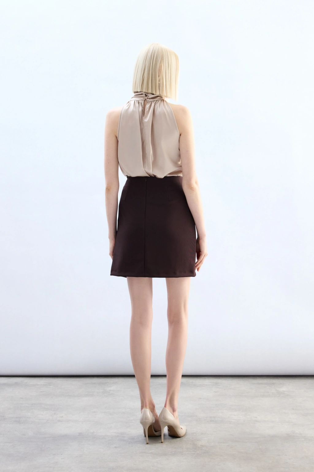 Yüksek Bel Saten Etek - Vizon