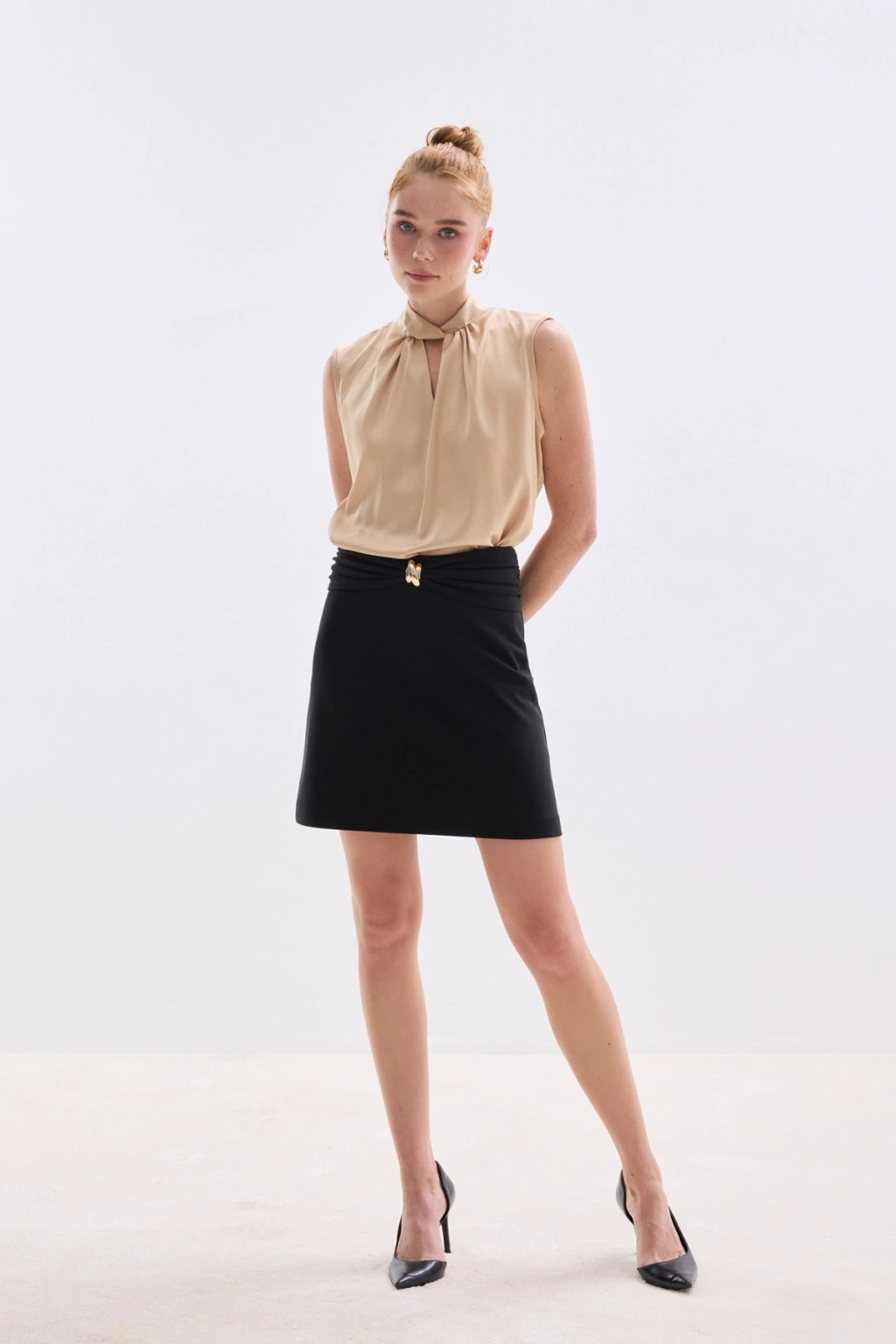 Kruvaze Süs Cepli Kısa Etek - Siyah
