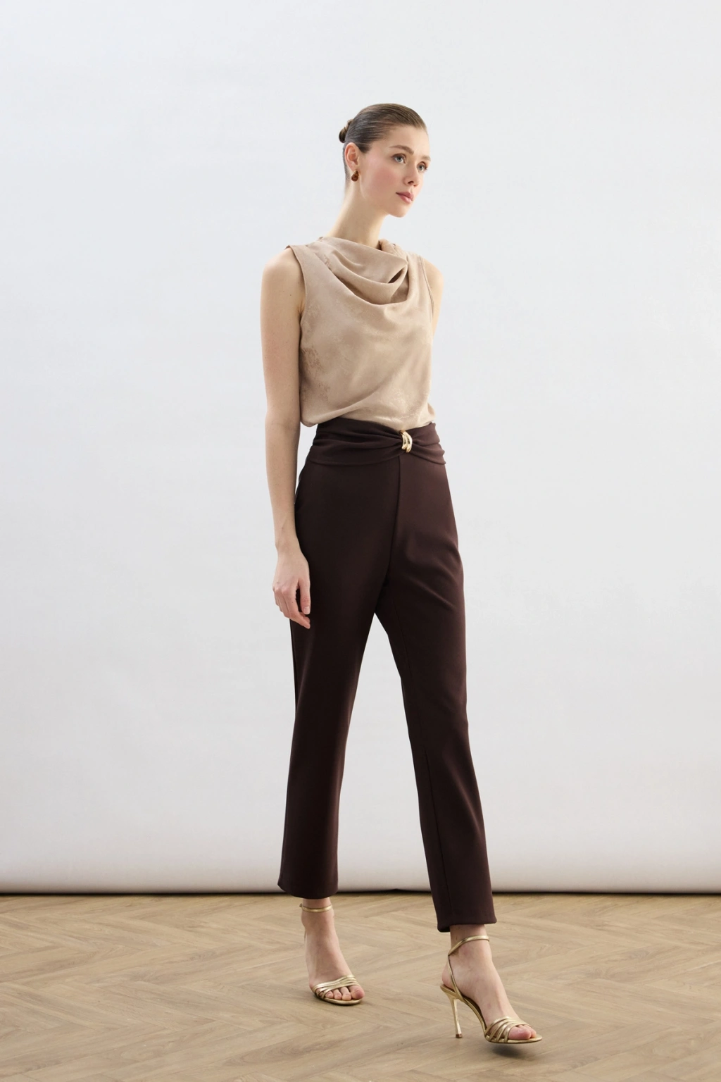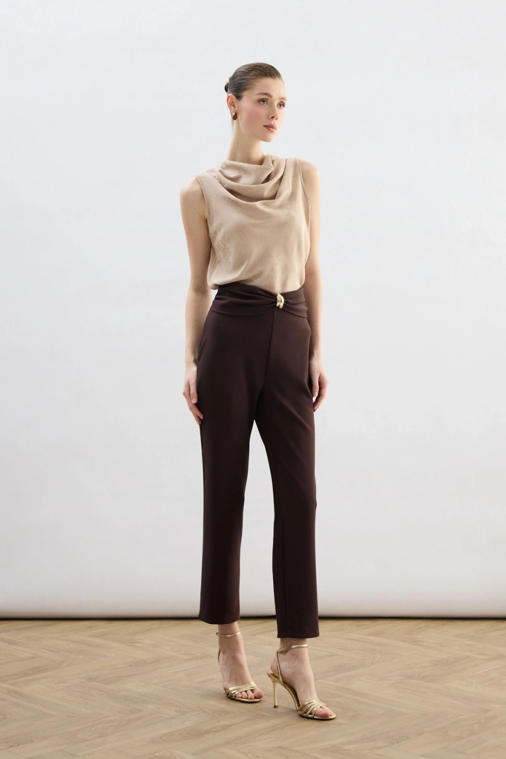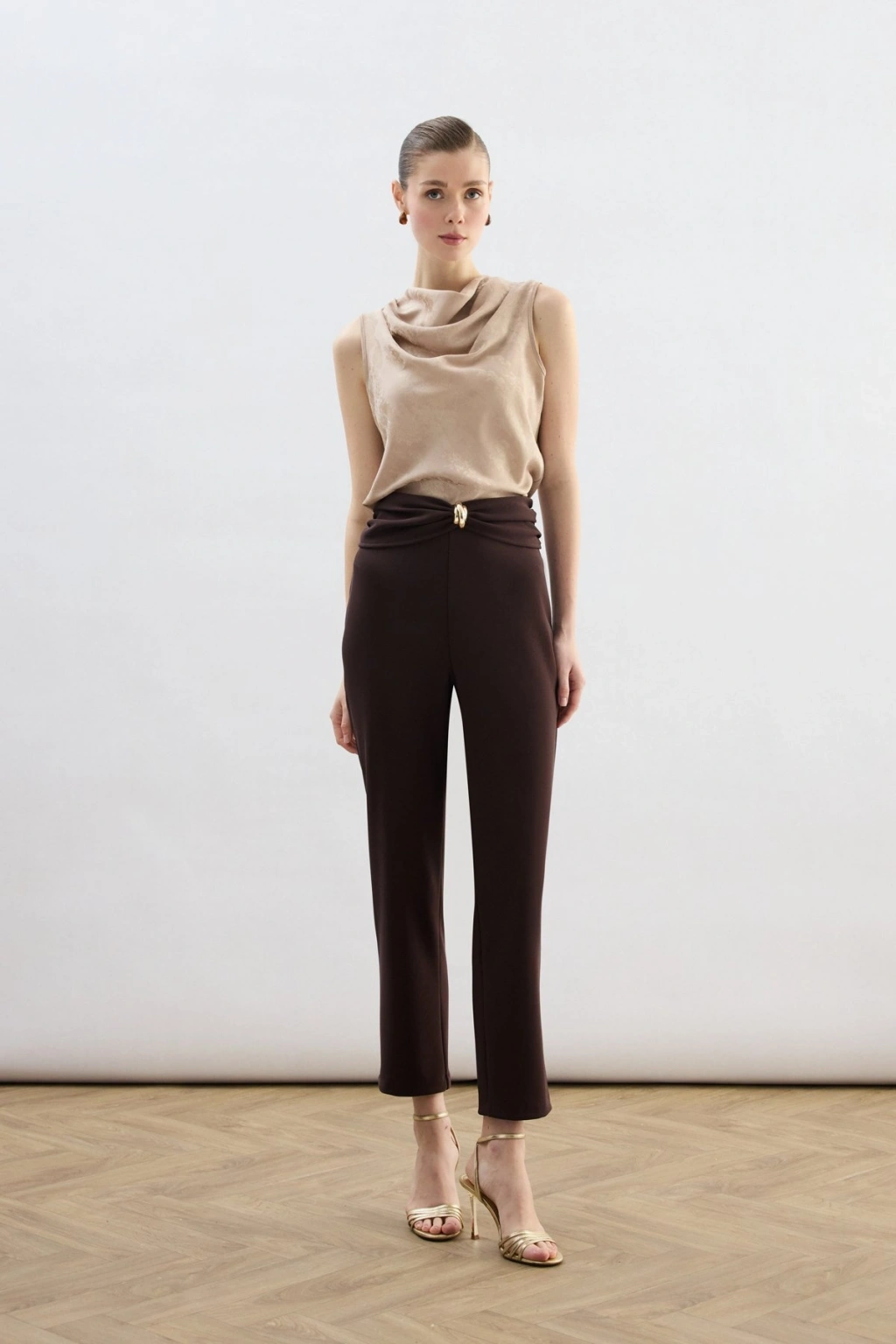 Bel Aksesuarlı Pantolon - Kahve