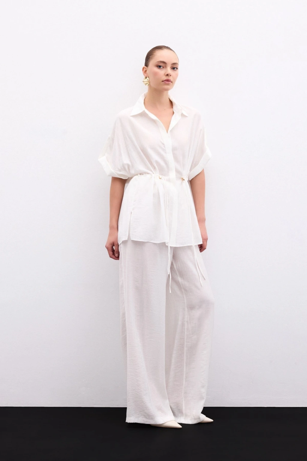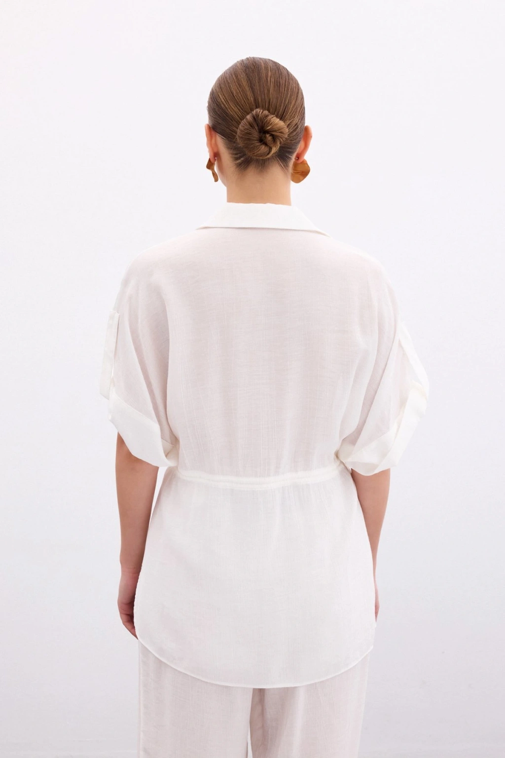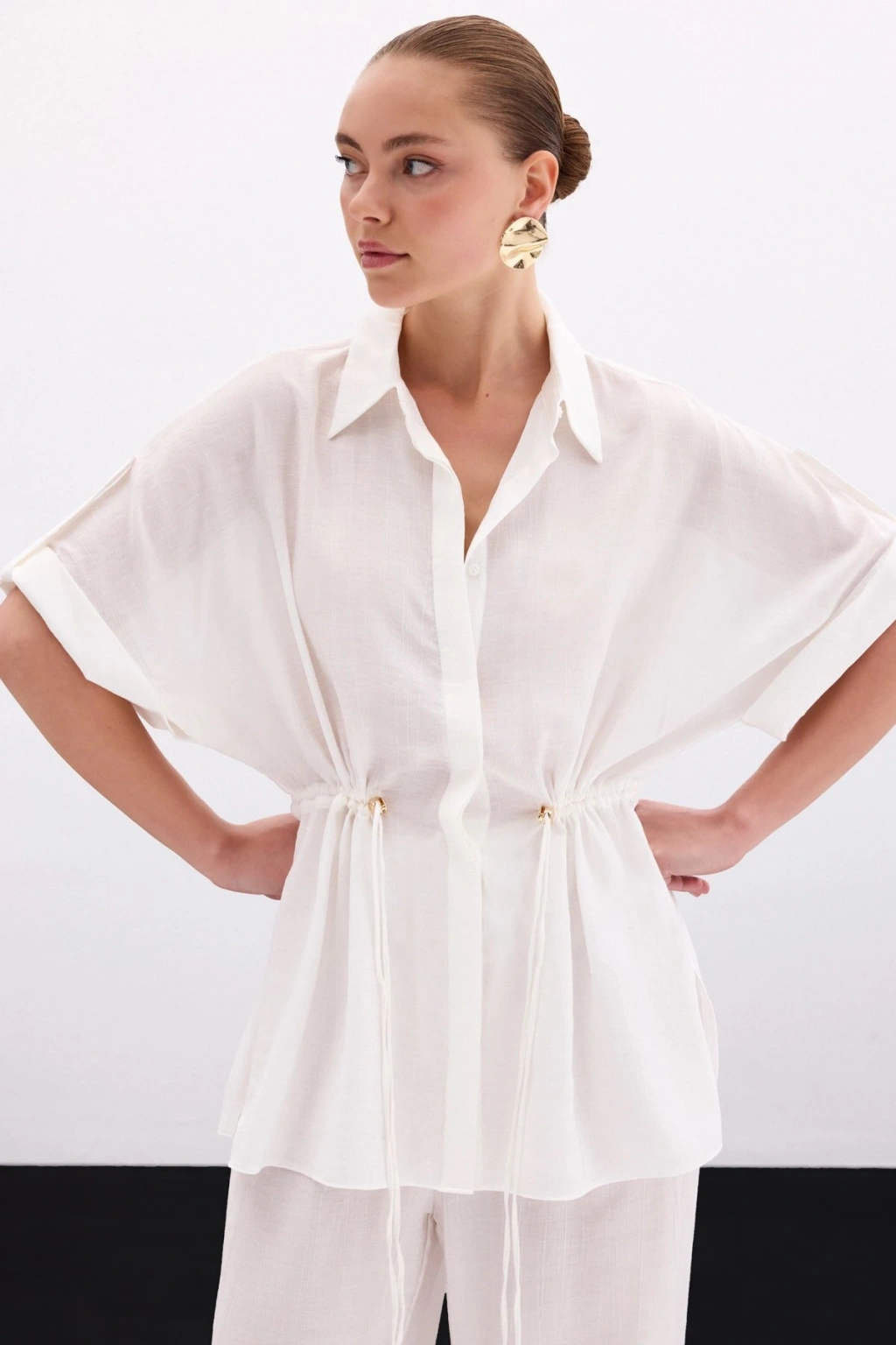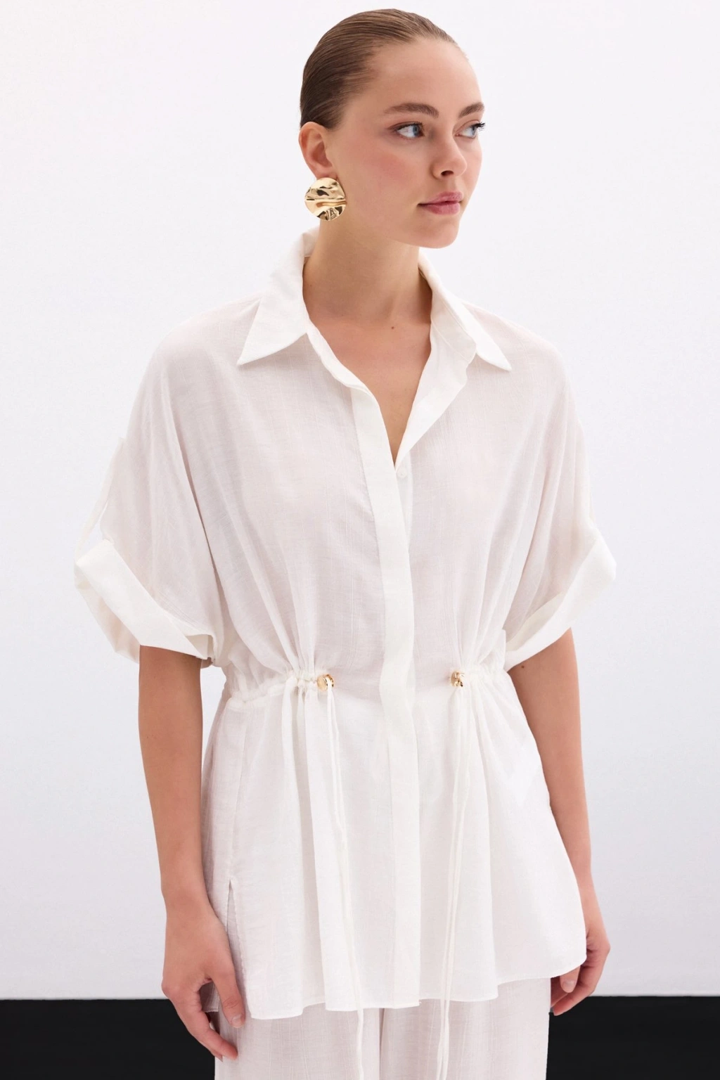 Bel Büzgü Detaylı Gömlek - Ekru