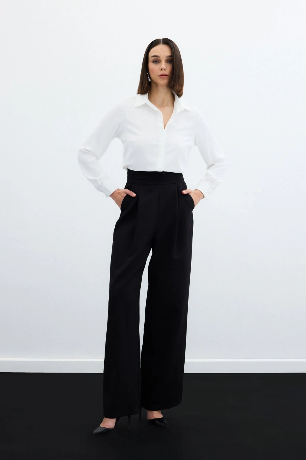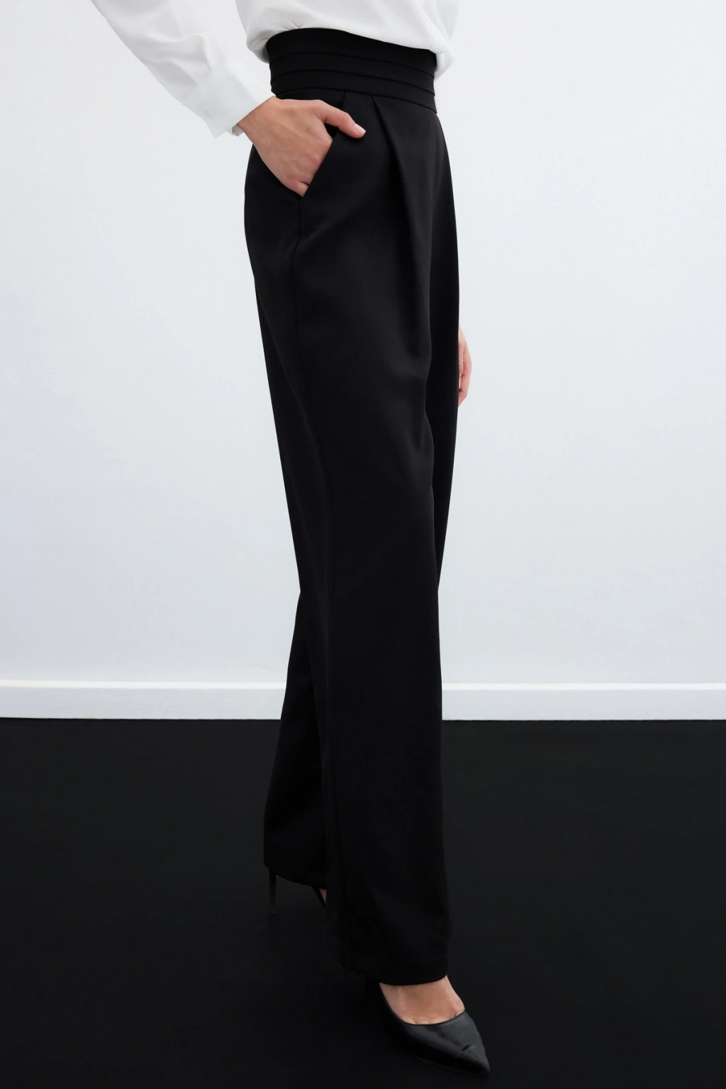 Bel Detaylı Pantolon - Siyah