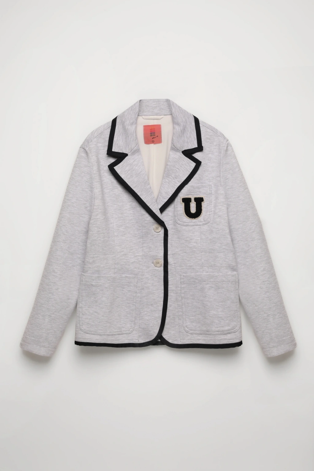 İçİ astarlı, yaka ve cep detaylarında kontrast bİye kullanılan, uzun kollu, blazer ceket.
