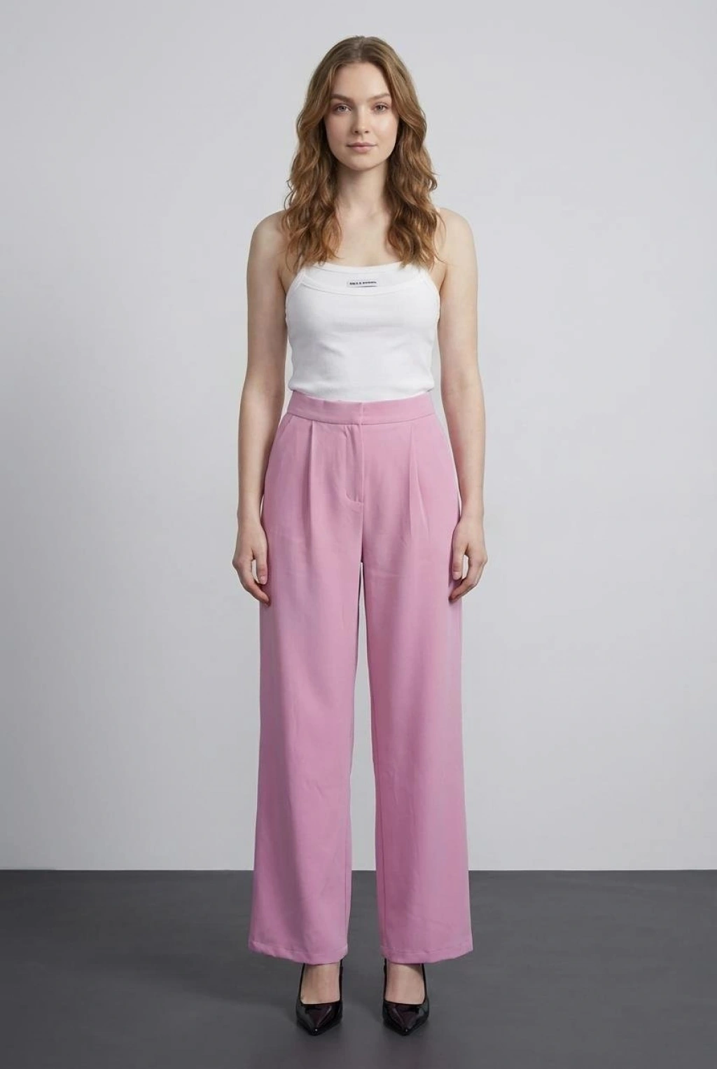 Beli Lastikli Bol Paça Pantolon Açık Pembe
