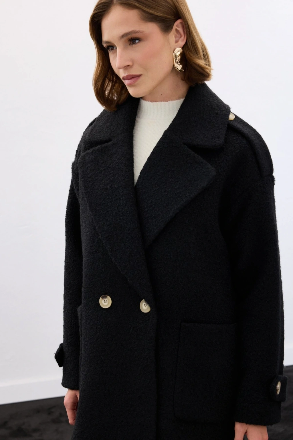 Düğme Detaylı Uzun Kaban - Siyah