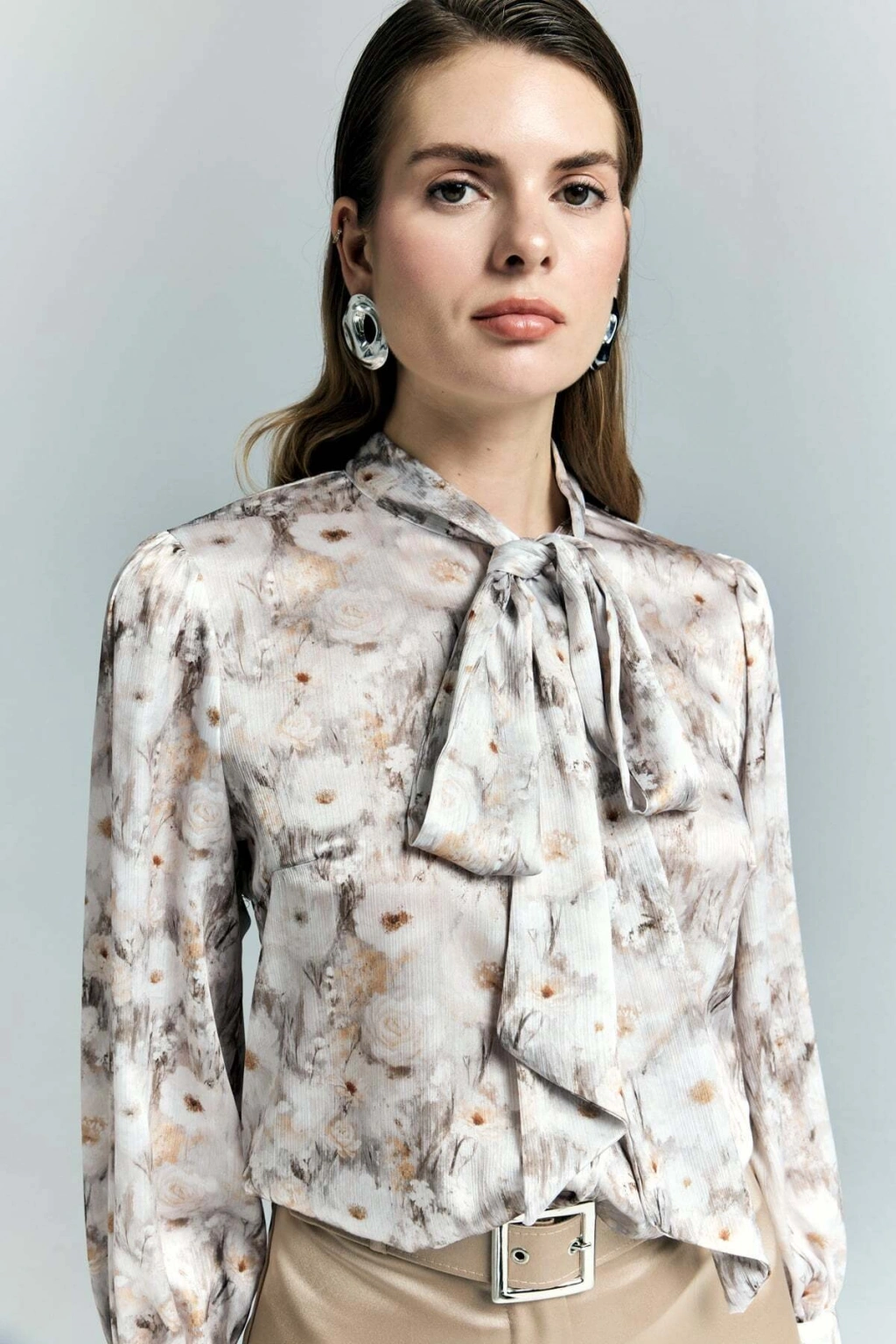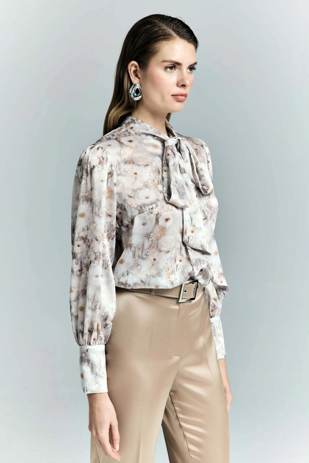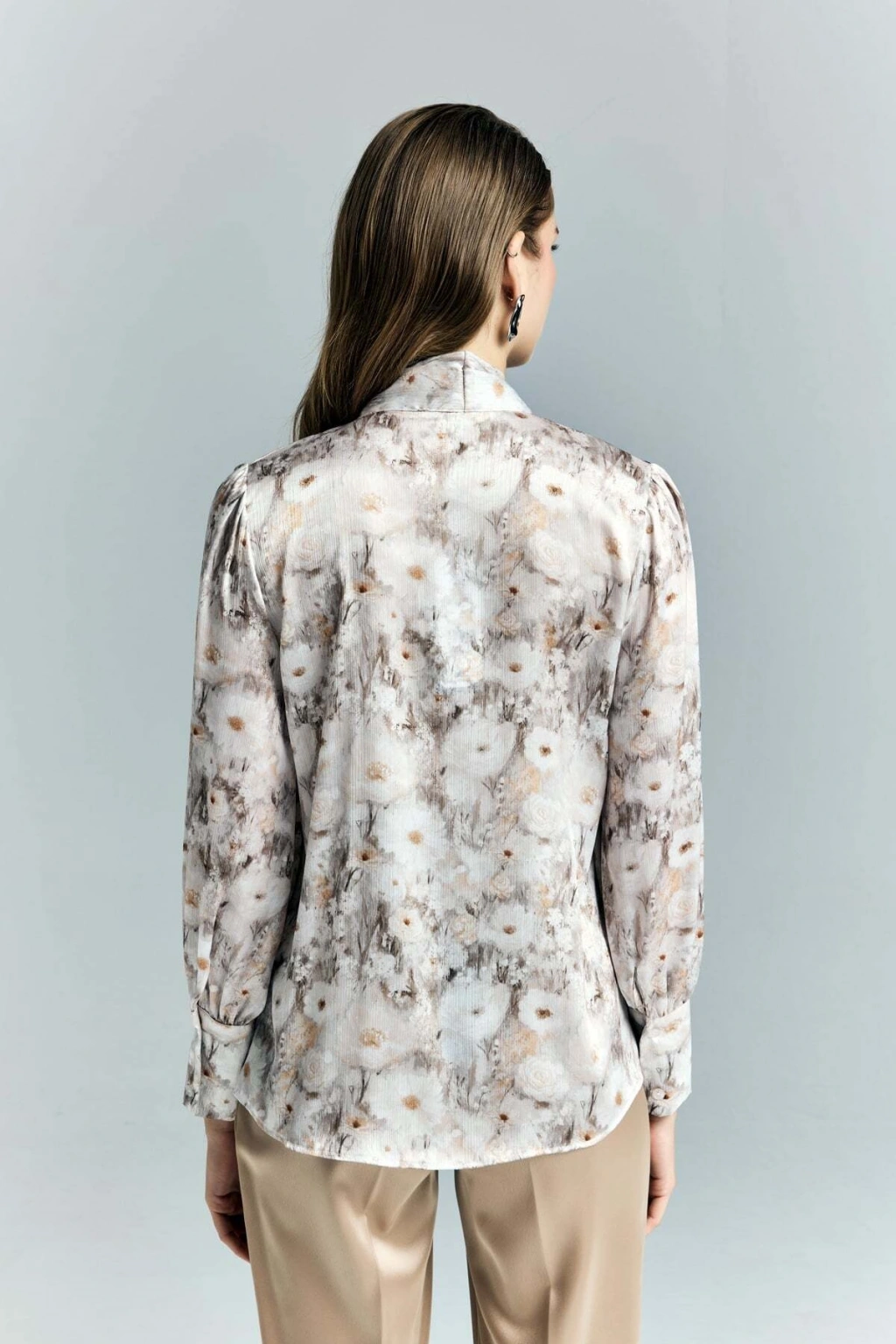 Şal Desen Kolu Katlamalı Gömlek - Pembe