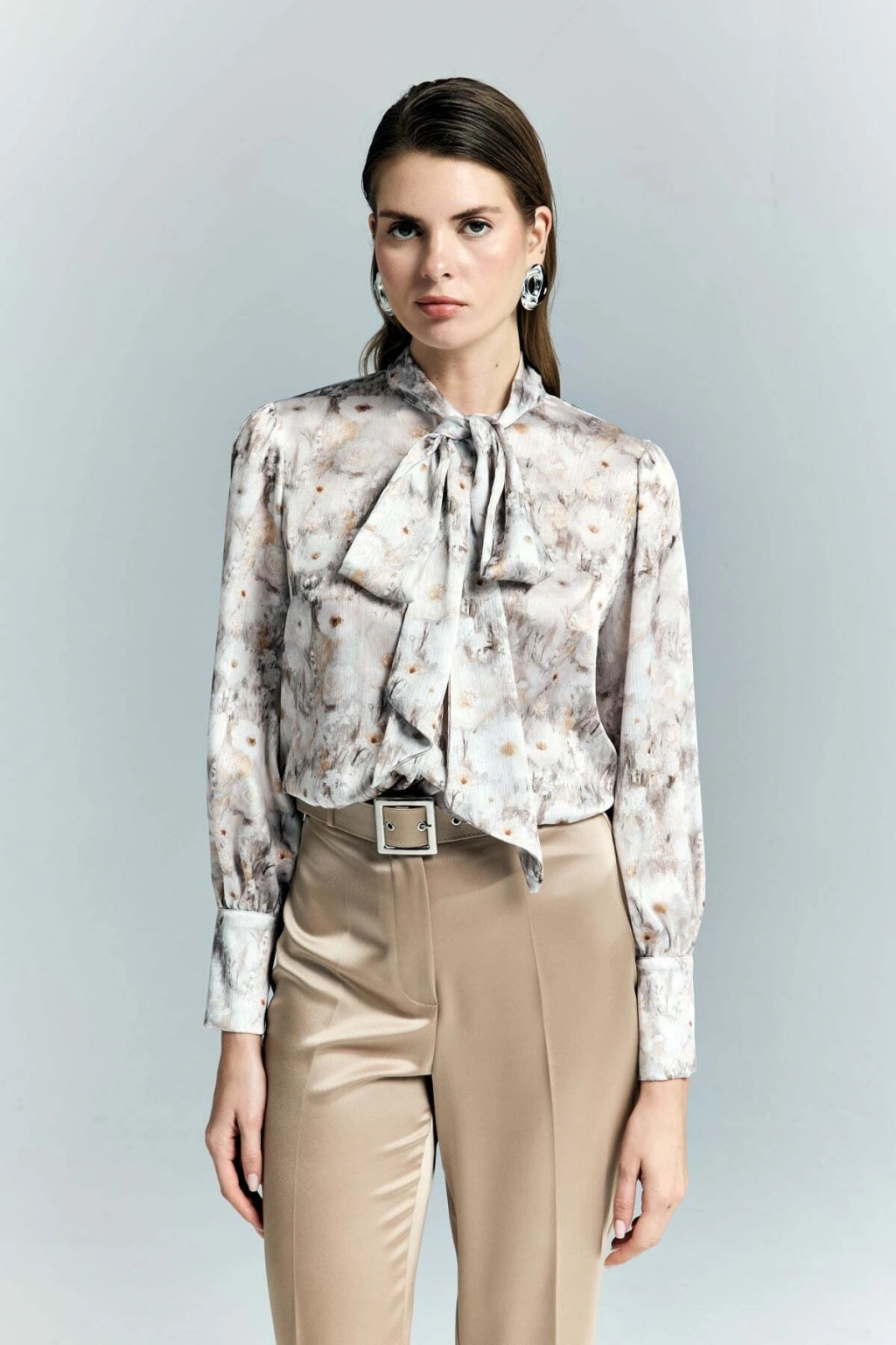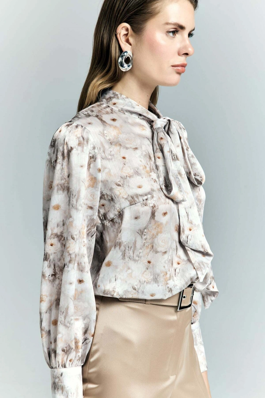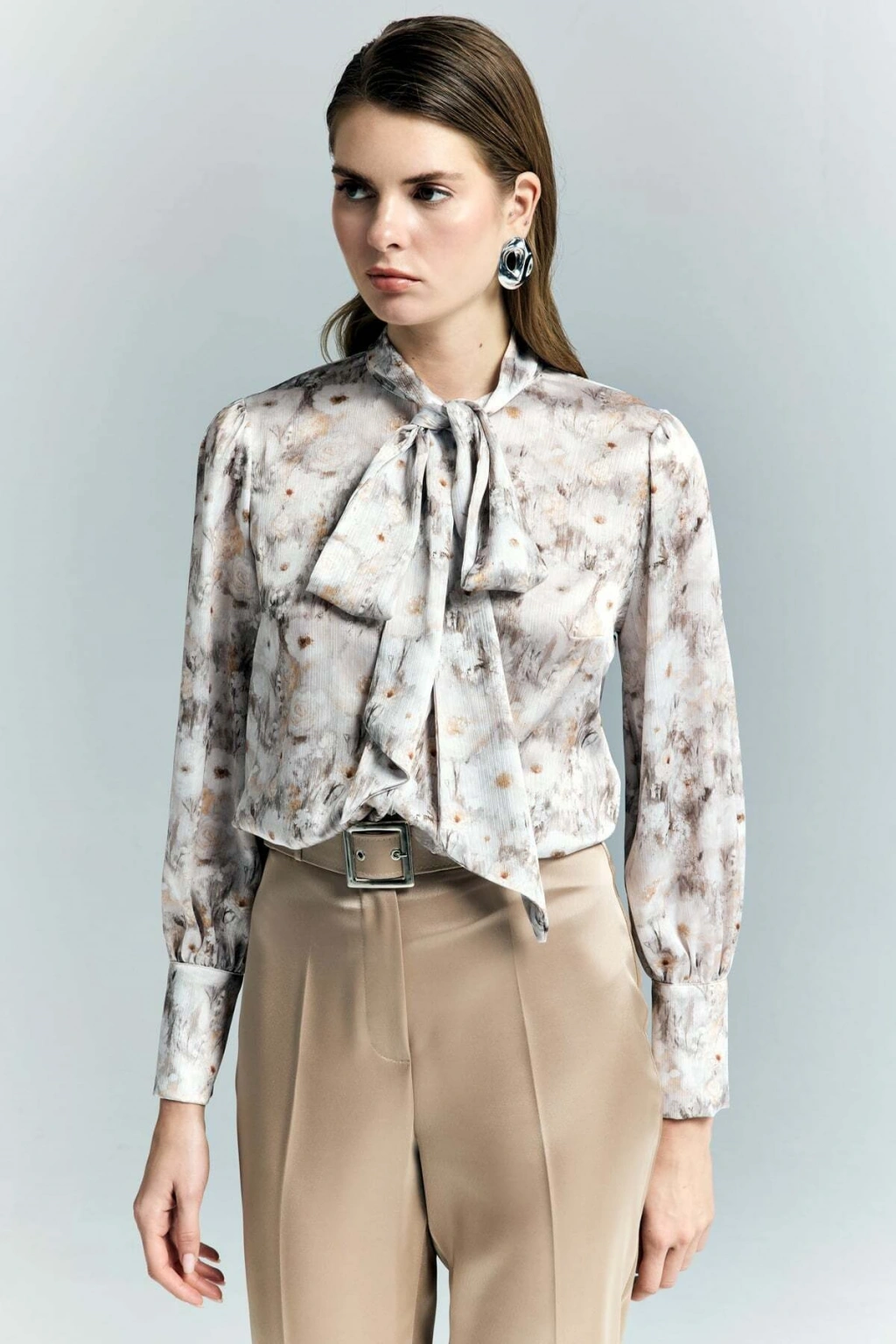Şal Desen Kolu Katlamalı Gömlek - Pembe