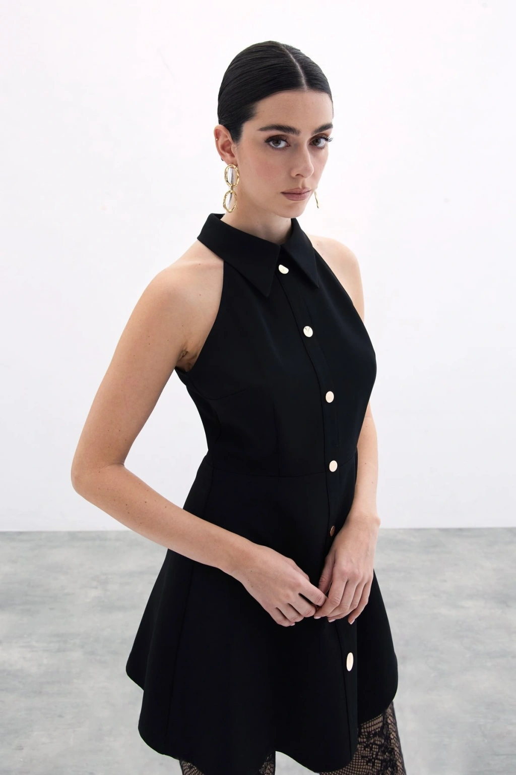 Çıt Çıtlı Kısa Elbise - Siyah