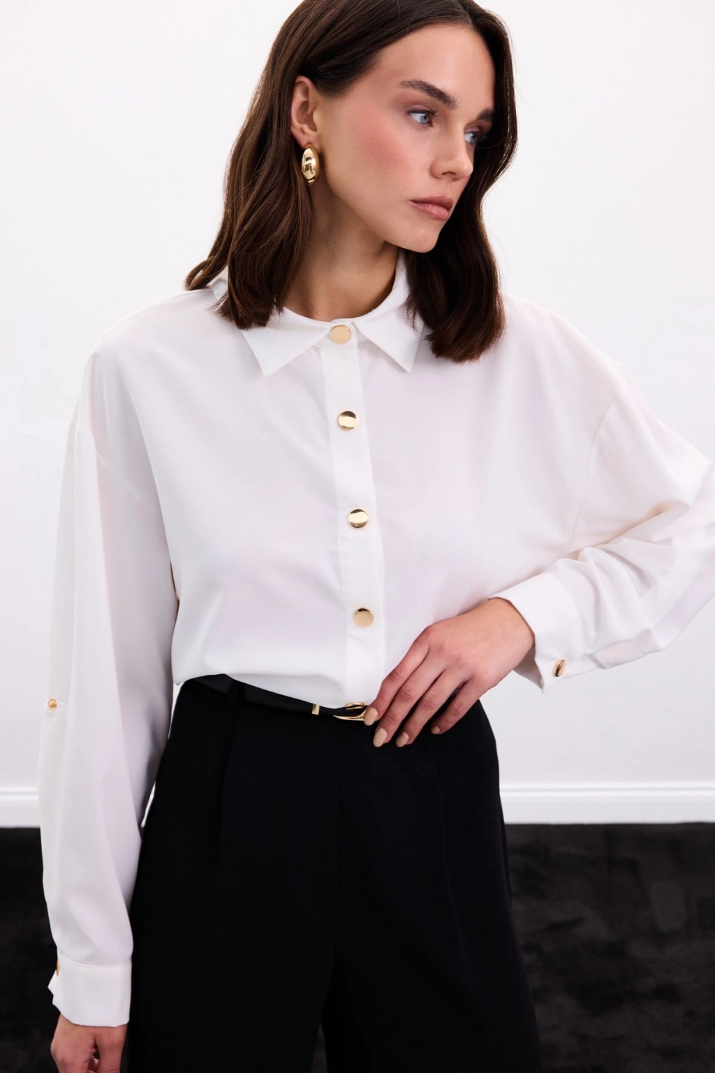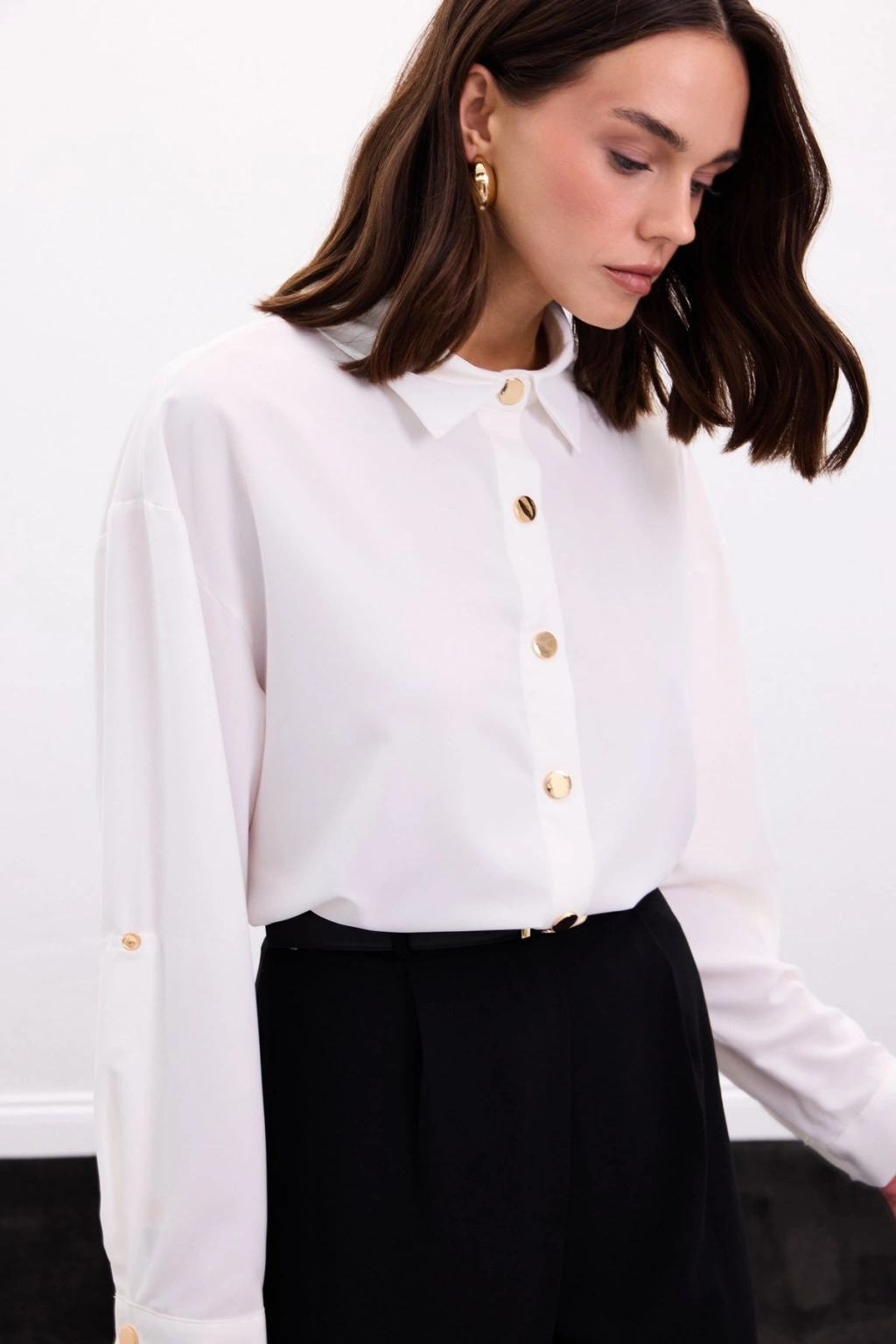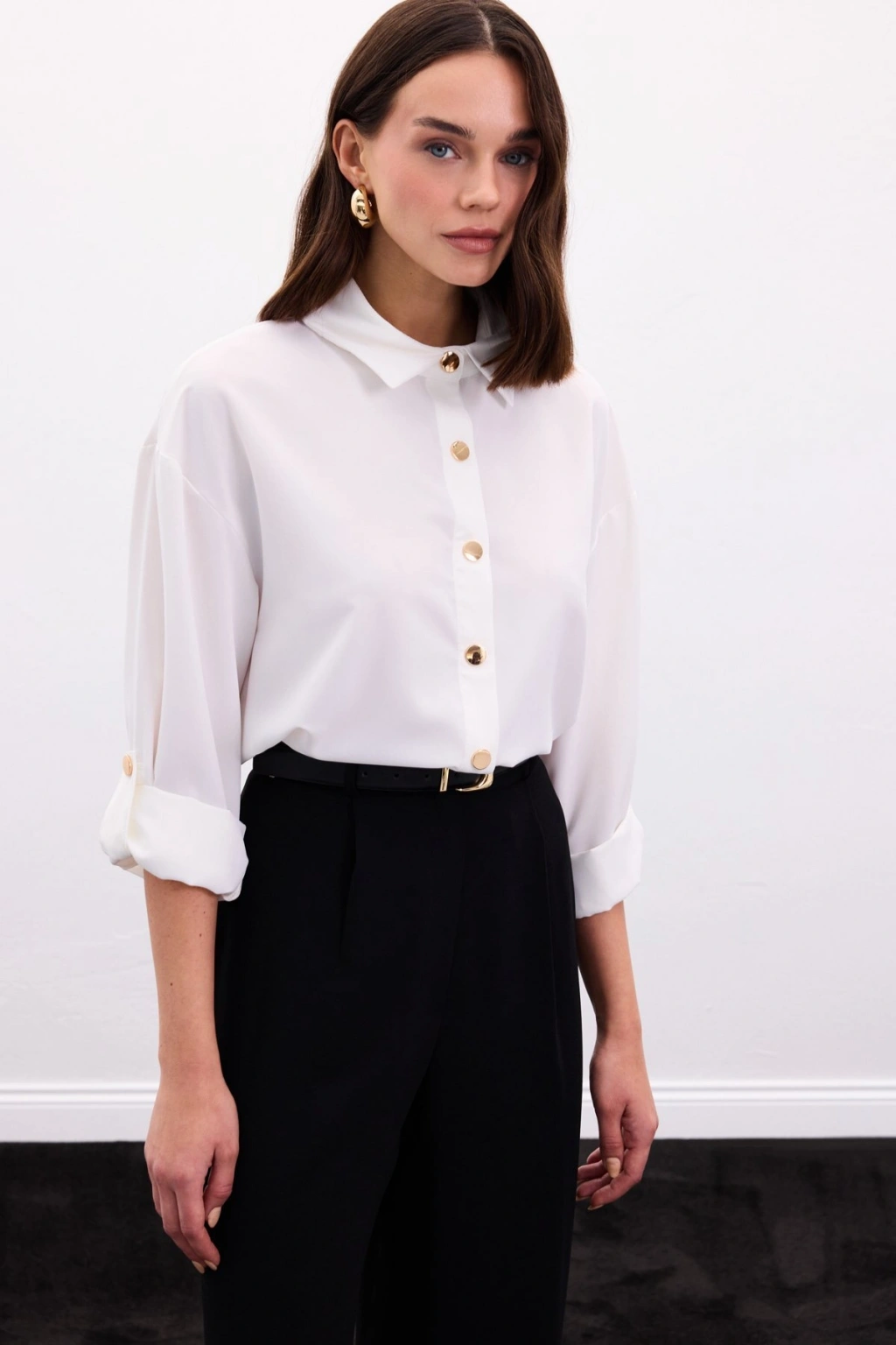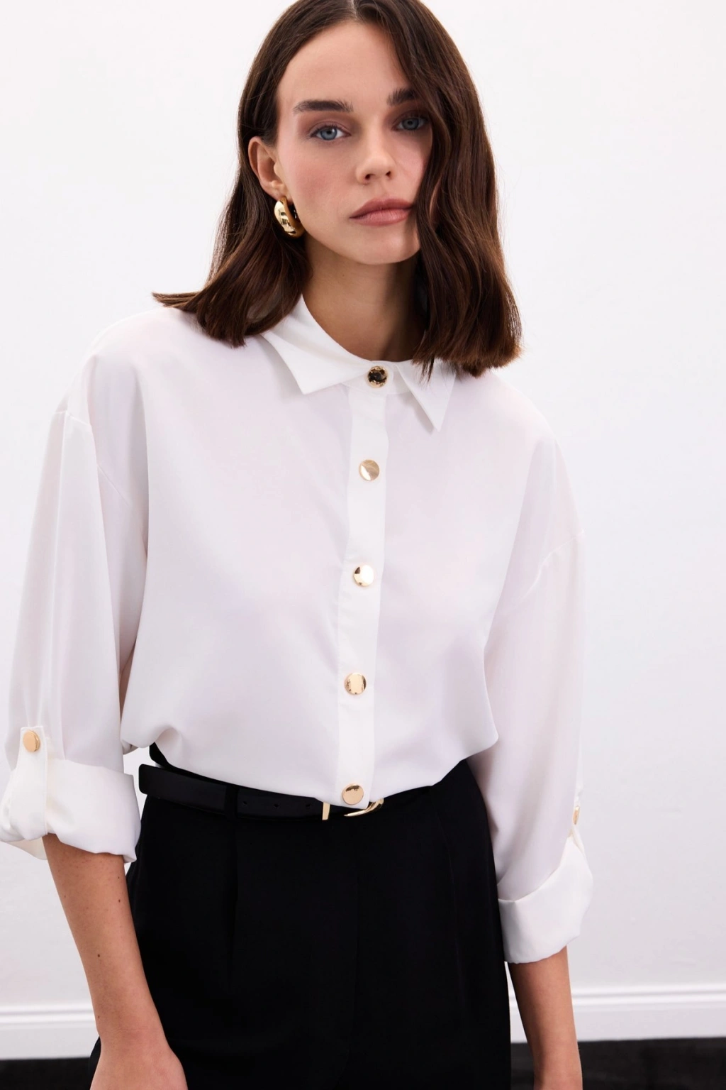 Çıtçıt Detaylı Gömlek - Ekru