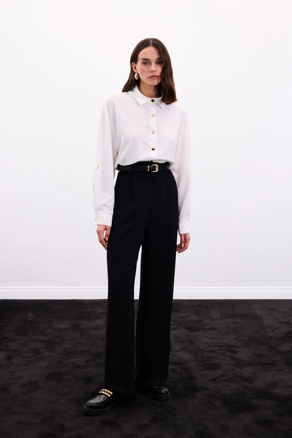 Yaka Ve Manşet Aksesuarlı Gömlek - Siyah