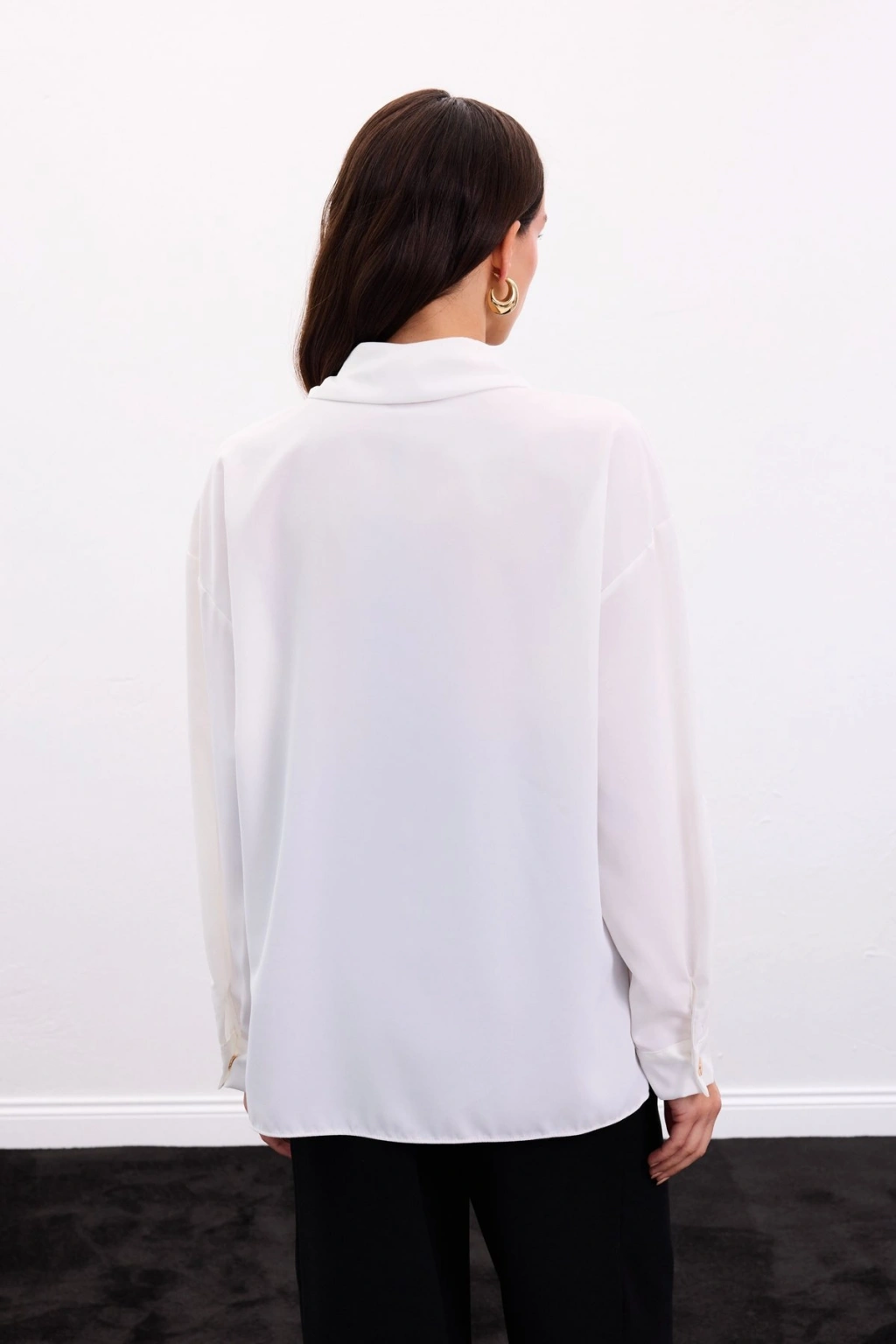 Fularlı Gömlek - Ekru