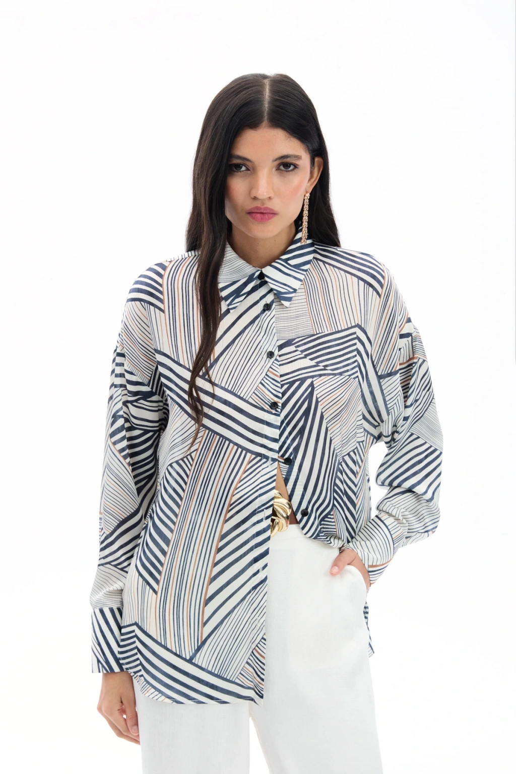 Çizgi Desenli Gömlek - Bej