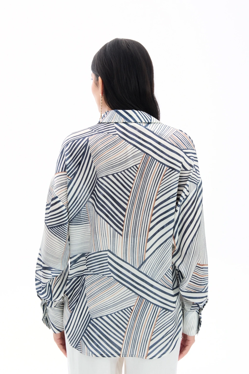 Çizgi Desenli Salaş Gömlek - Siyah