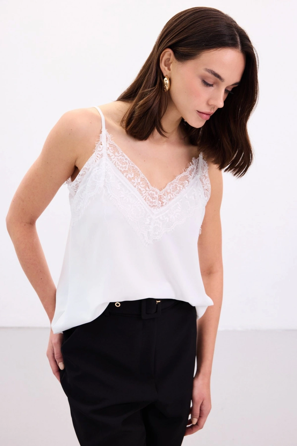 Dantel Detaylı Askılı Bluz - Ekru