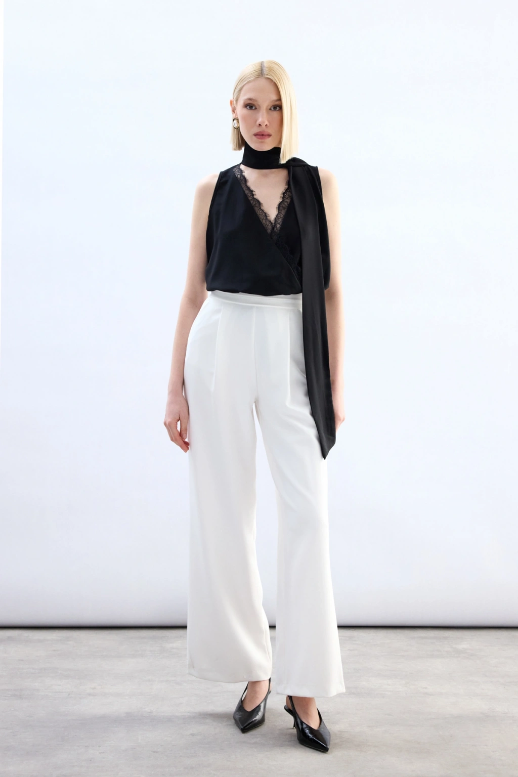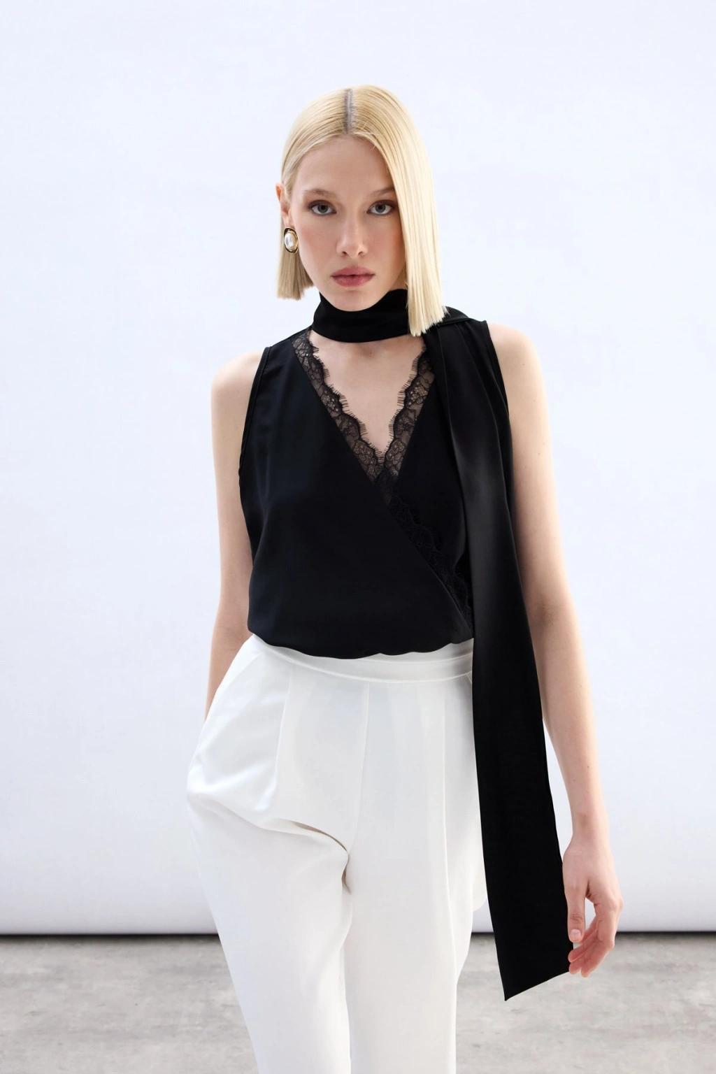 Dantel Detaylı Bodysuit Bluz - Siyah