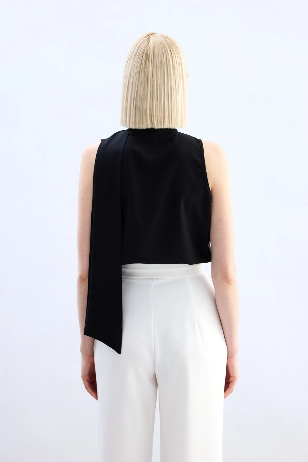 Puantiye Desenli Kolsuz Bluz - Siyah