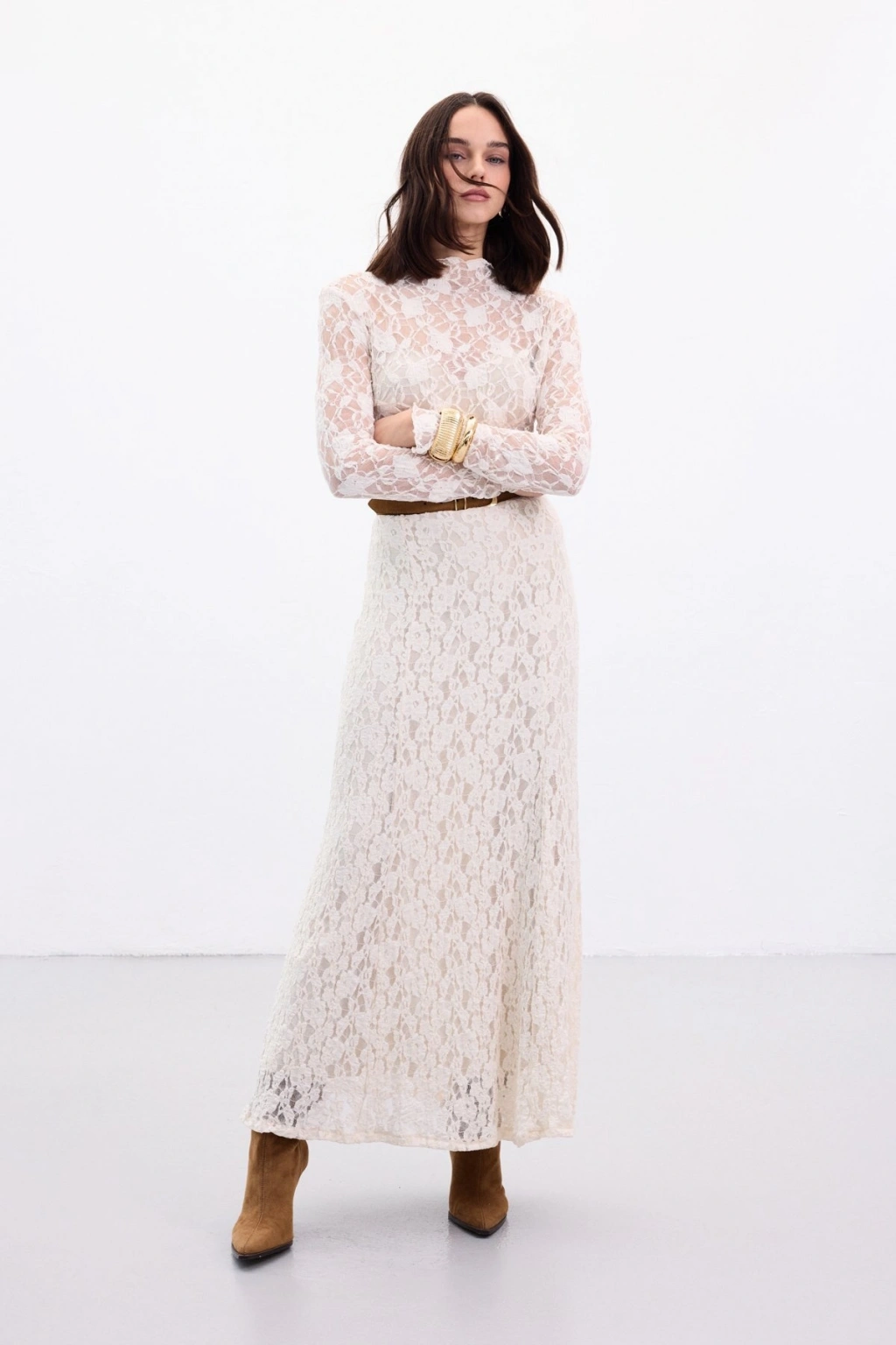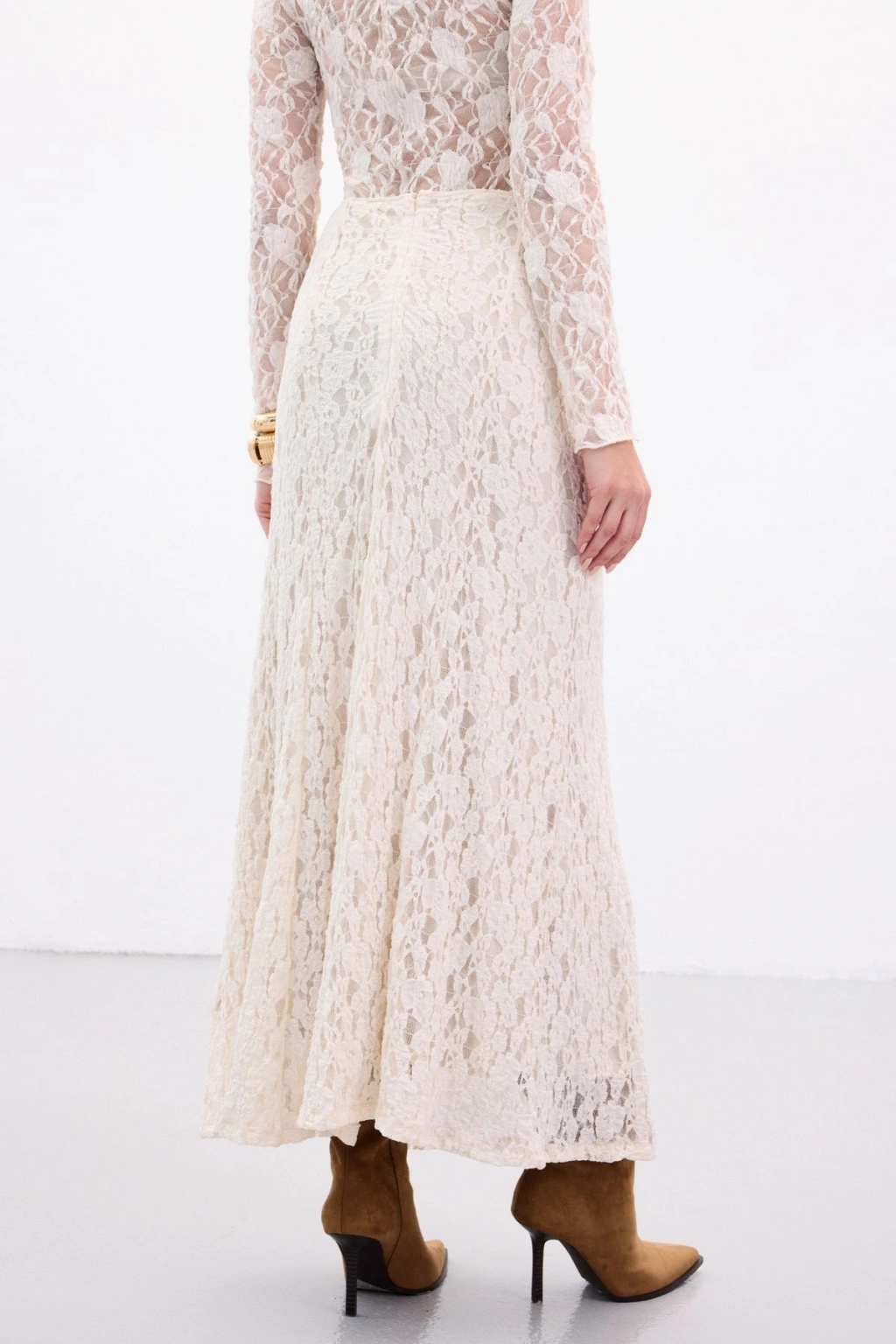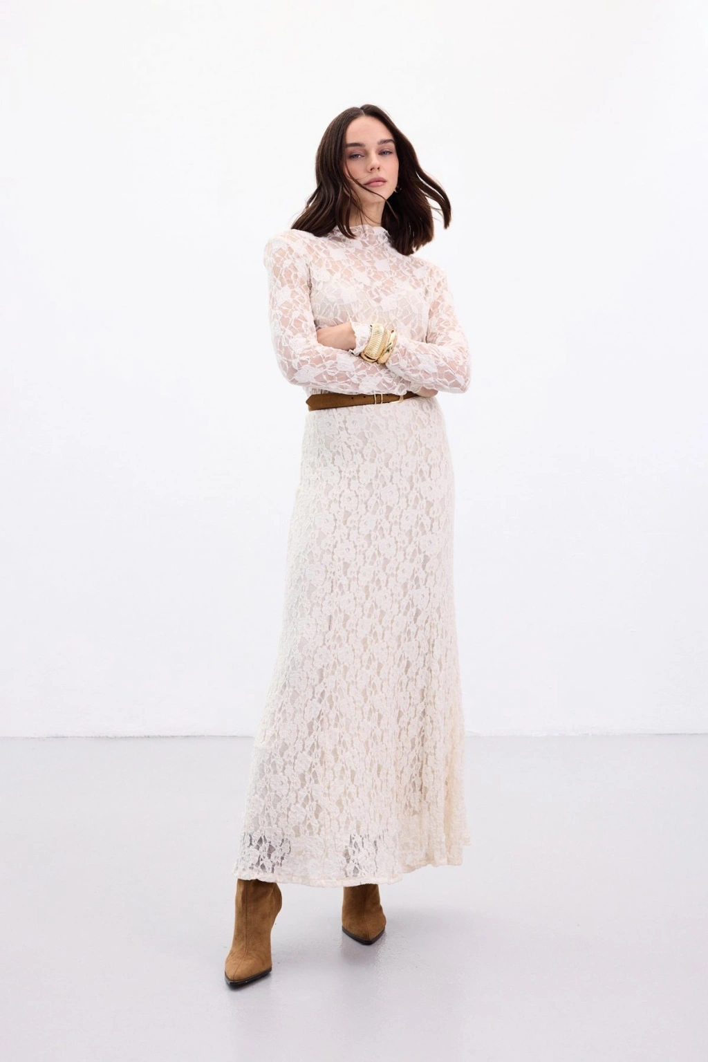 Aksesuar Kuşaklı Yırtmaçlı Etek - Lacivert