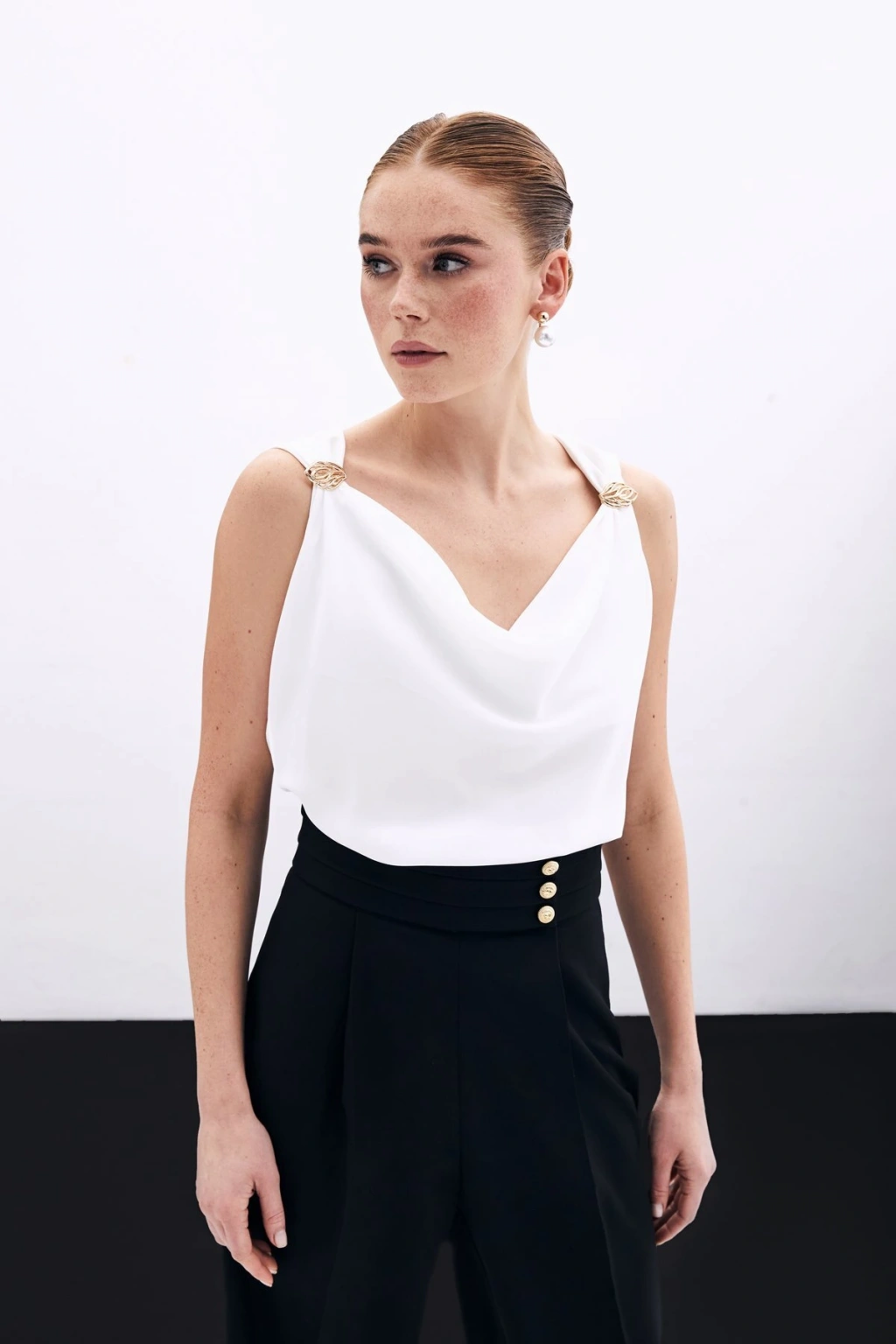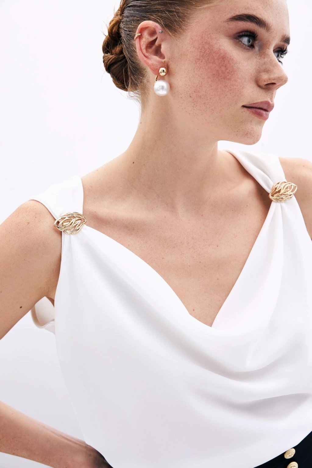 Aksesuarlı Salaş Bluz - Ekru