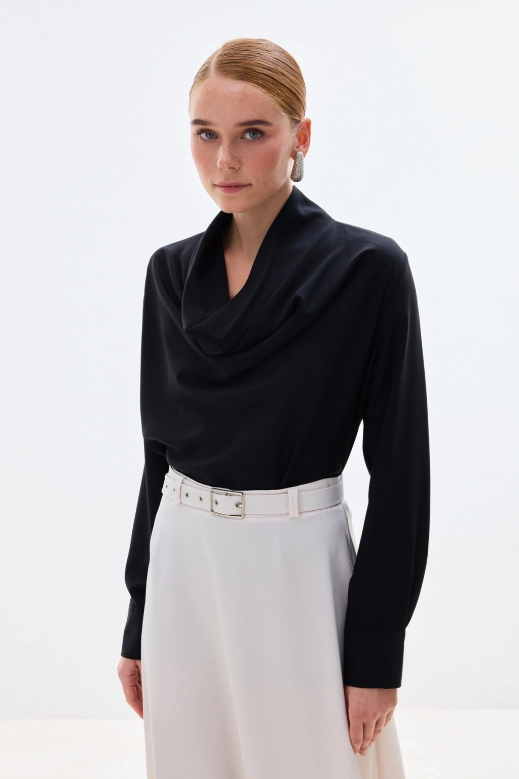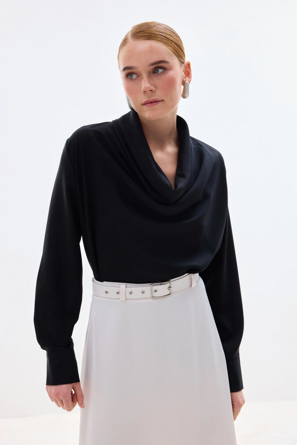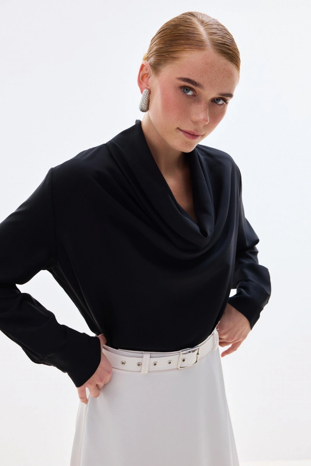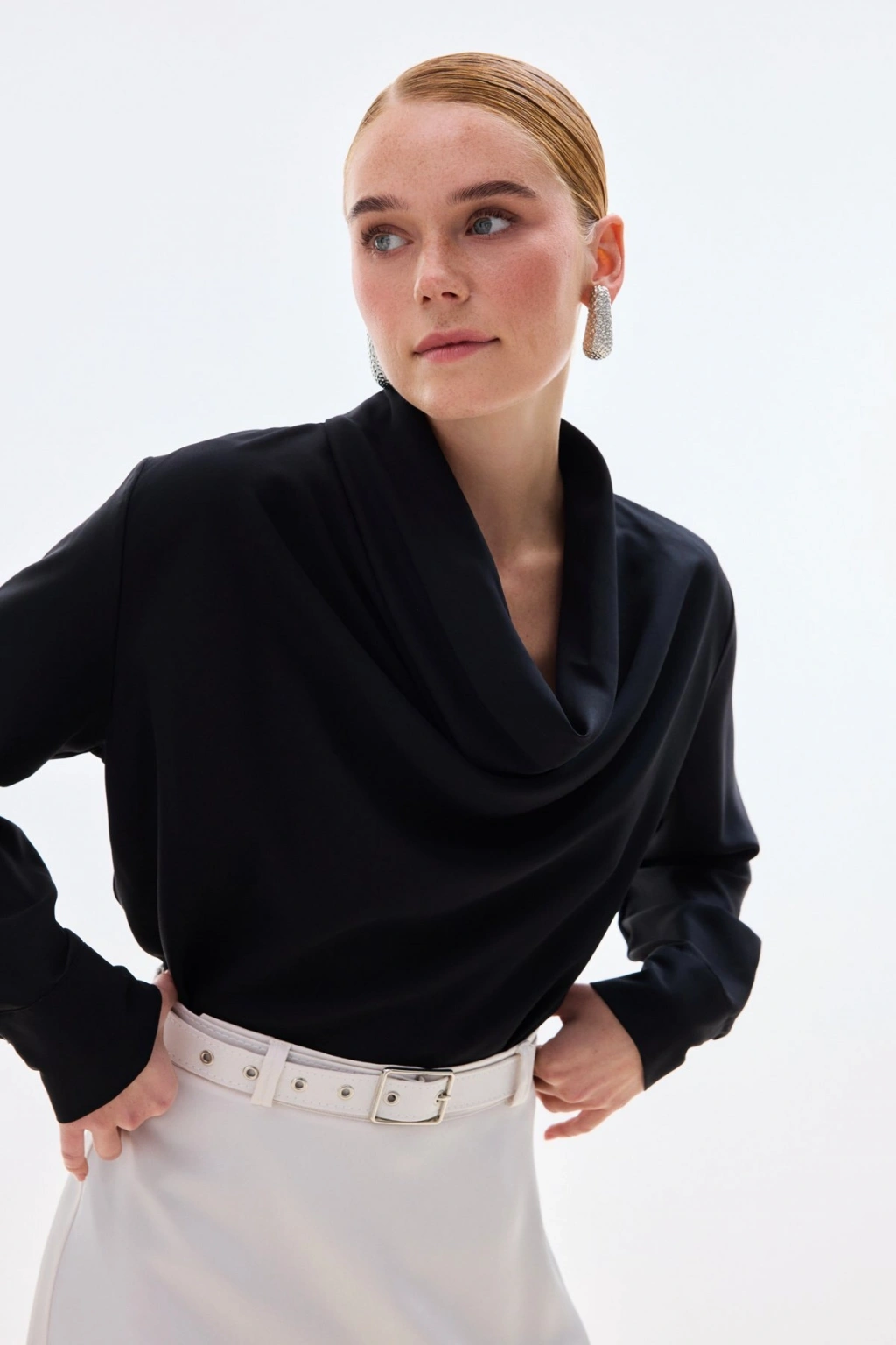 Toka Aksesuarlı Anvelop Bluz Siyah