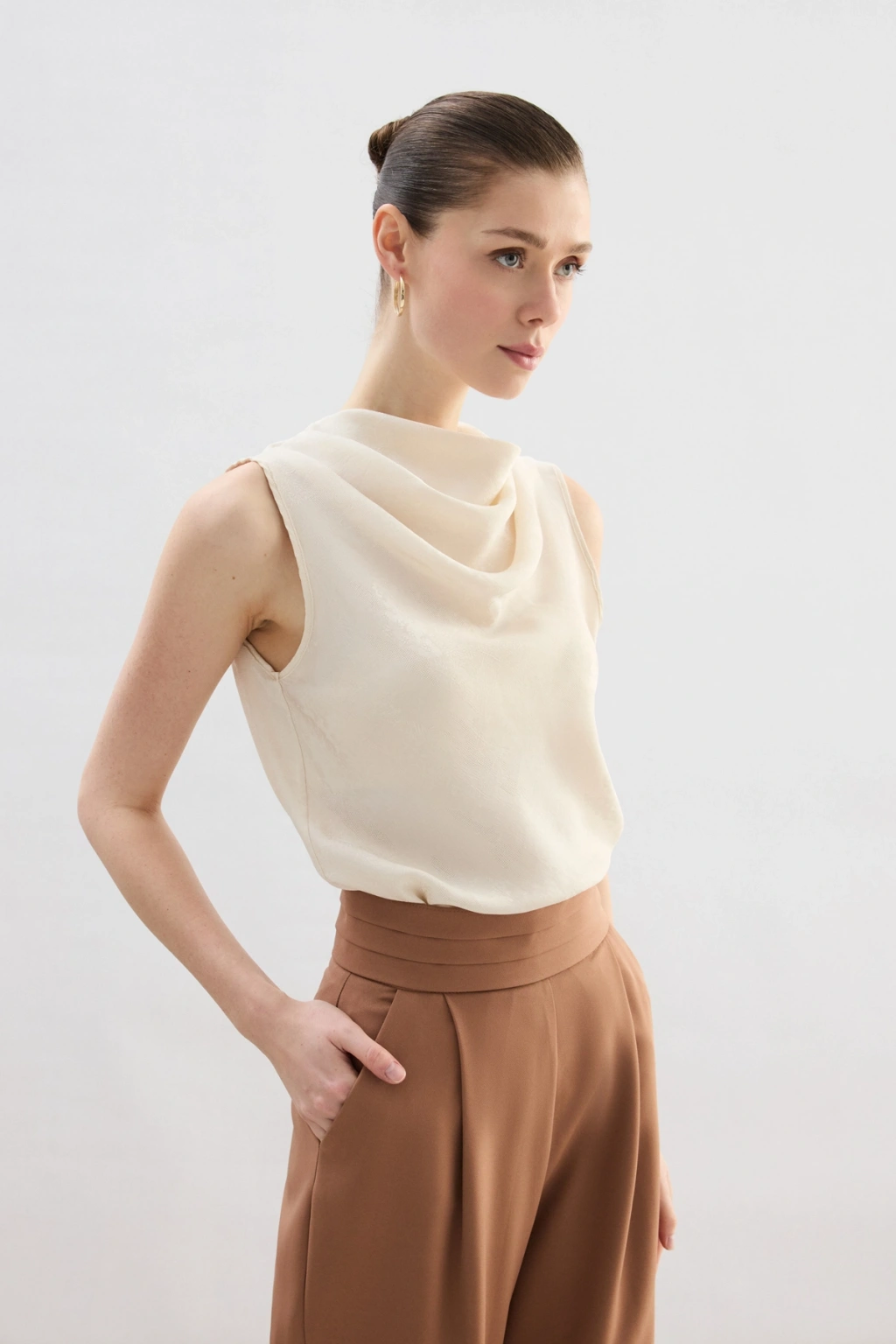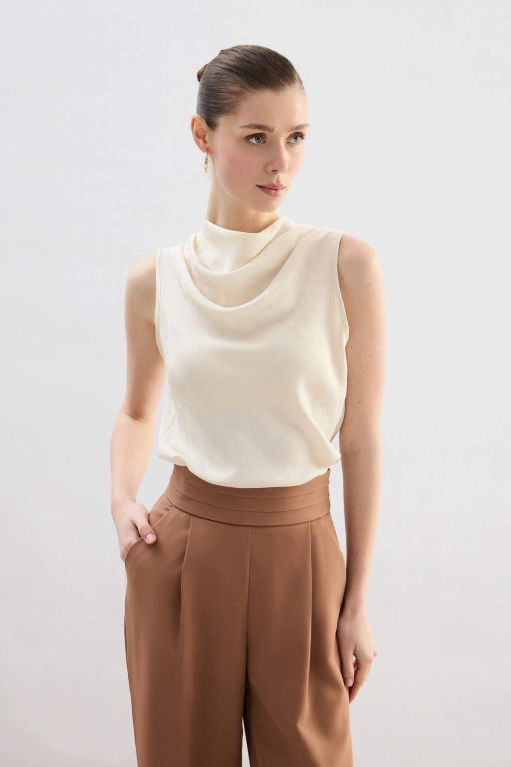 Puantiye Desenli Kolsuz Bluz - Ekru