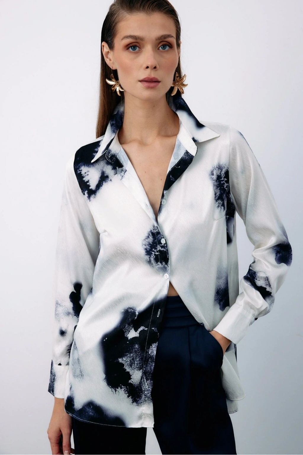 Desenli Geniş Klasik Gömlek - LACİVERT