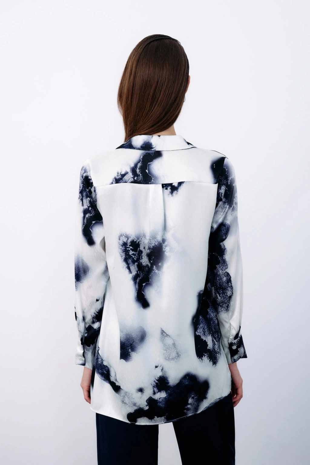 Desenli Fular Yaka Gömlek - Mavi