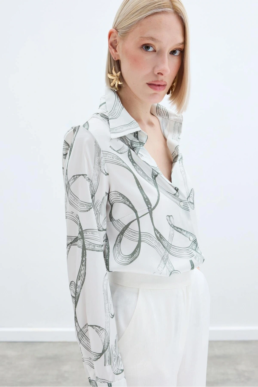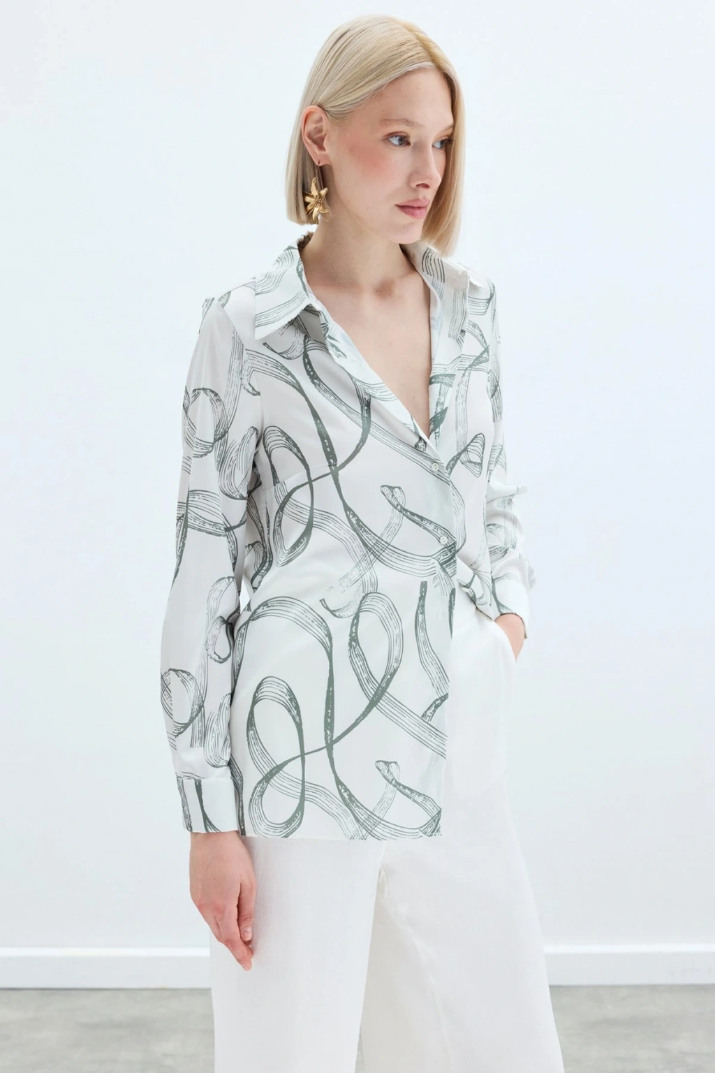 Aksesuarlı Klasik Gömlek - Ekru