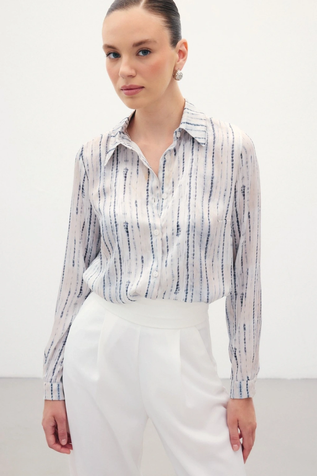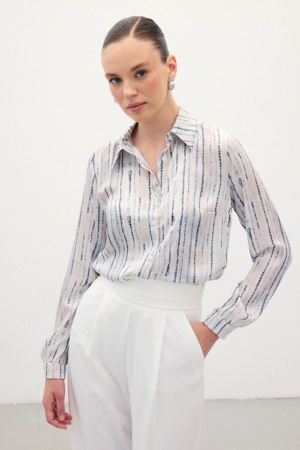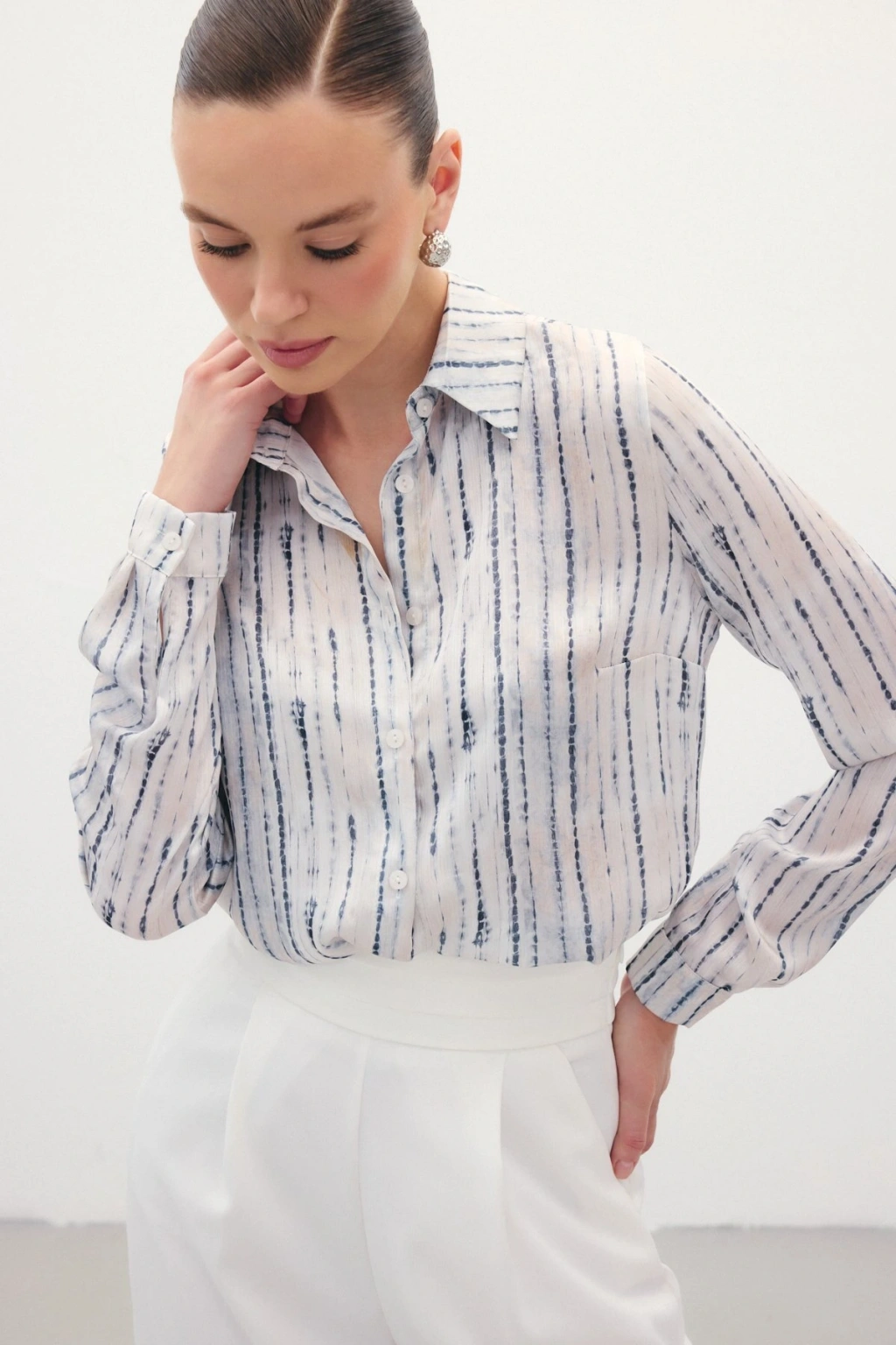 Zebra Desenli Gömlek - Ekru