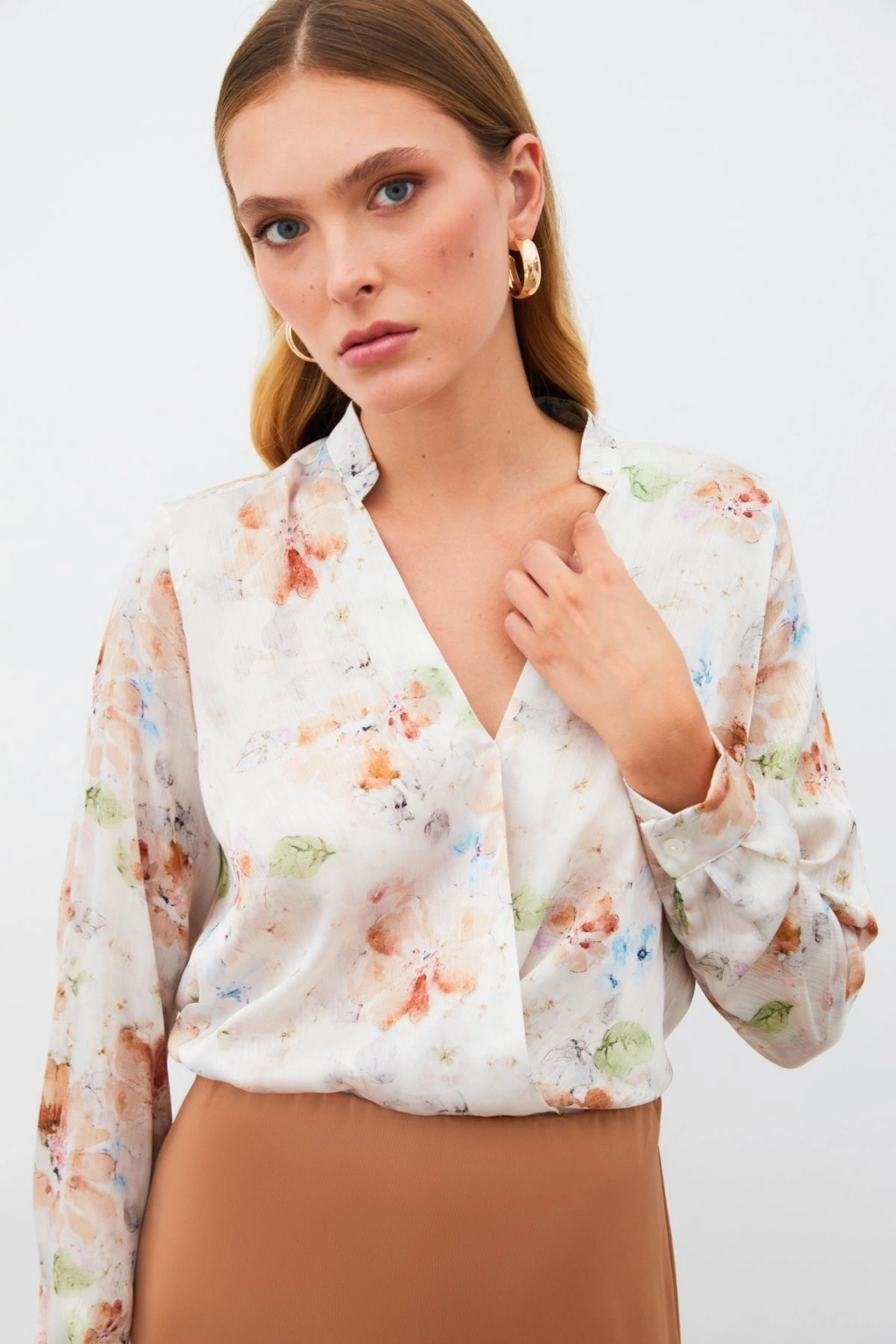 Desenli Kruvaze Bluz - VİZON