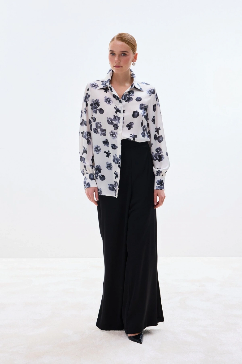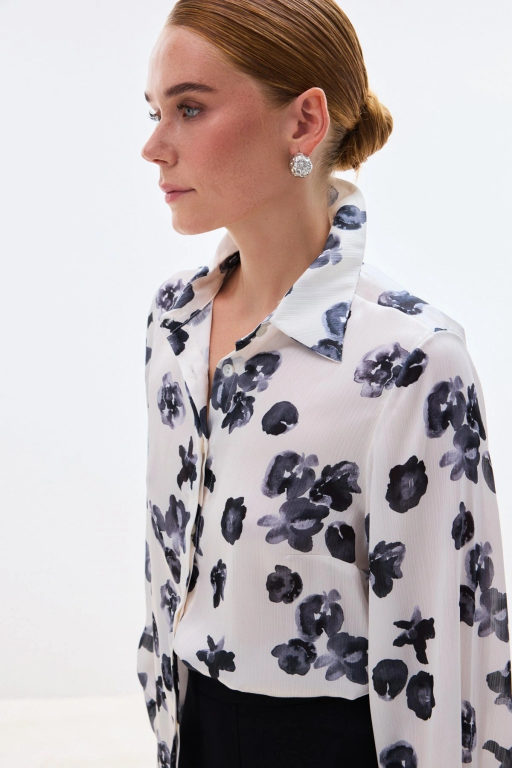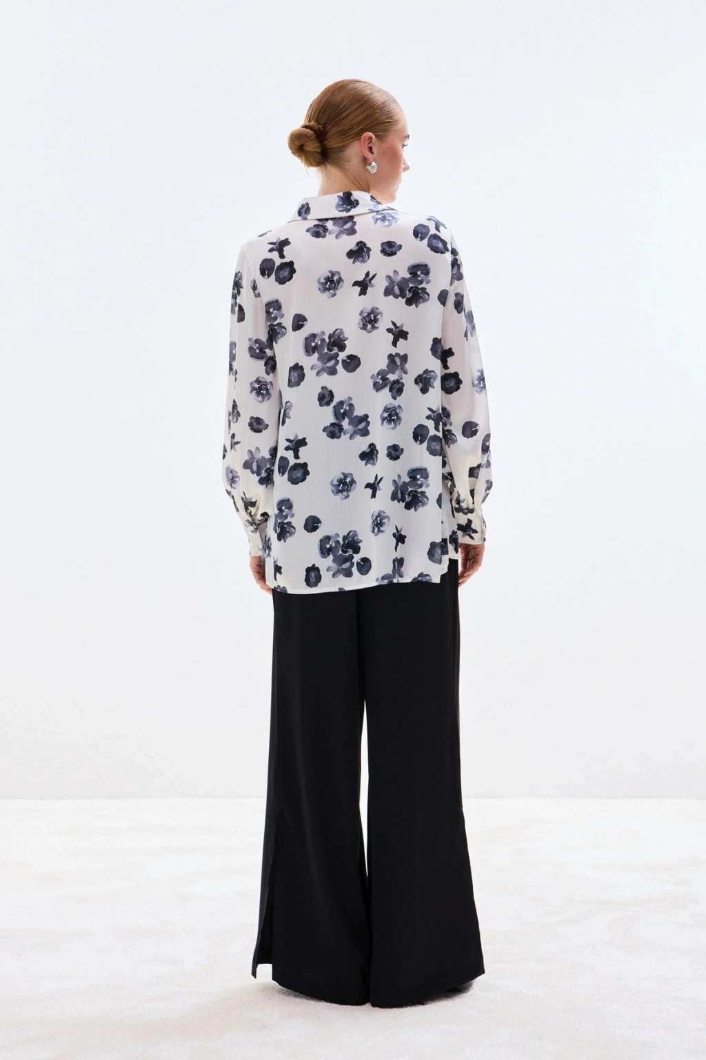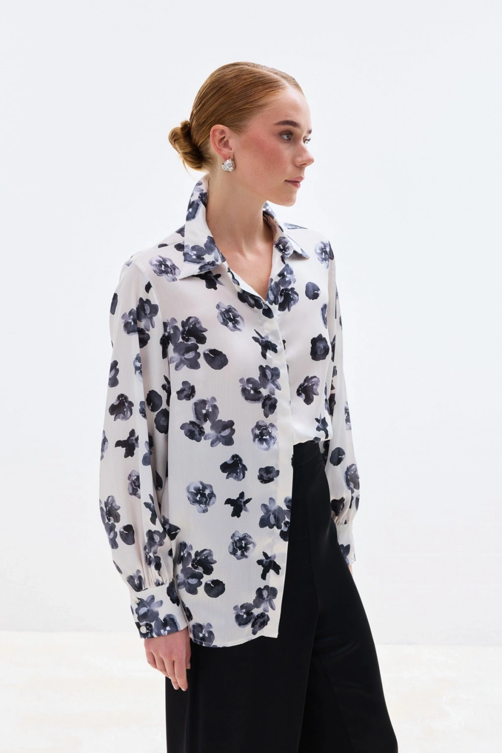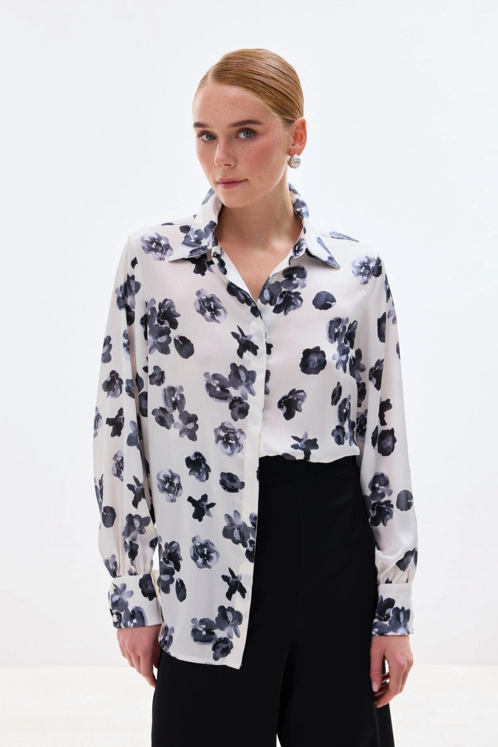 Çiçek Desenli Fularlı Gömlek - Pudra