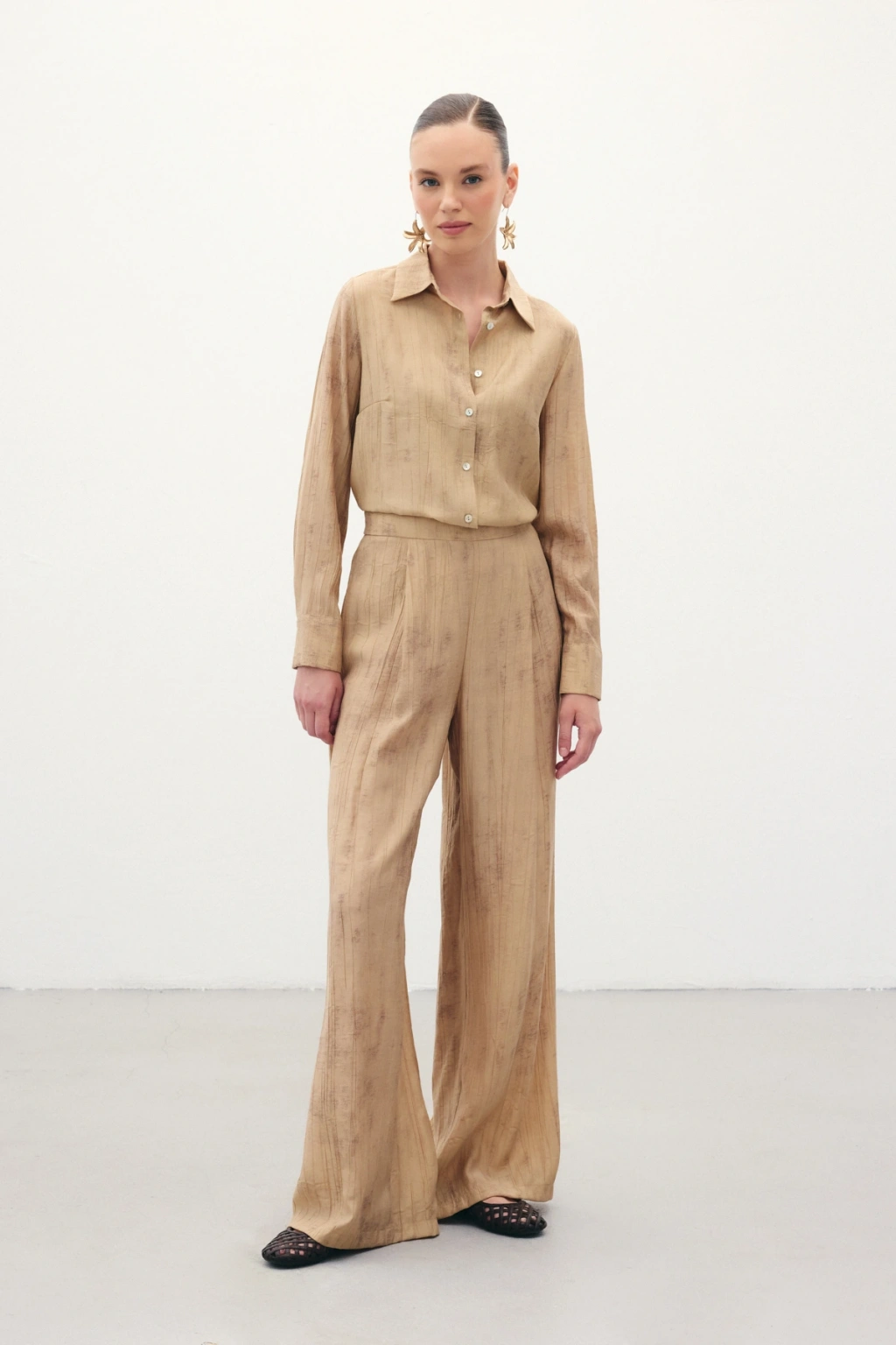 Desenli Salaş Pantolon - Camel