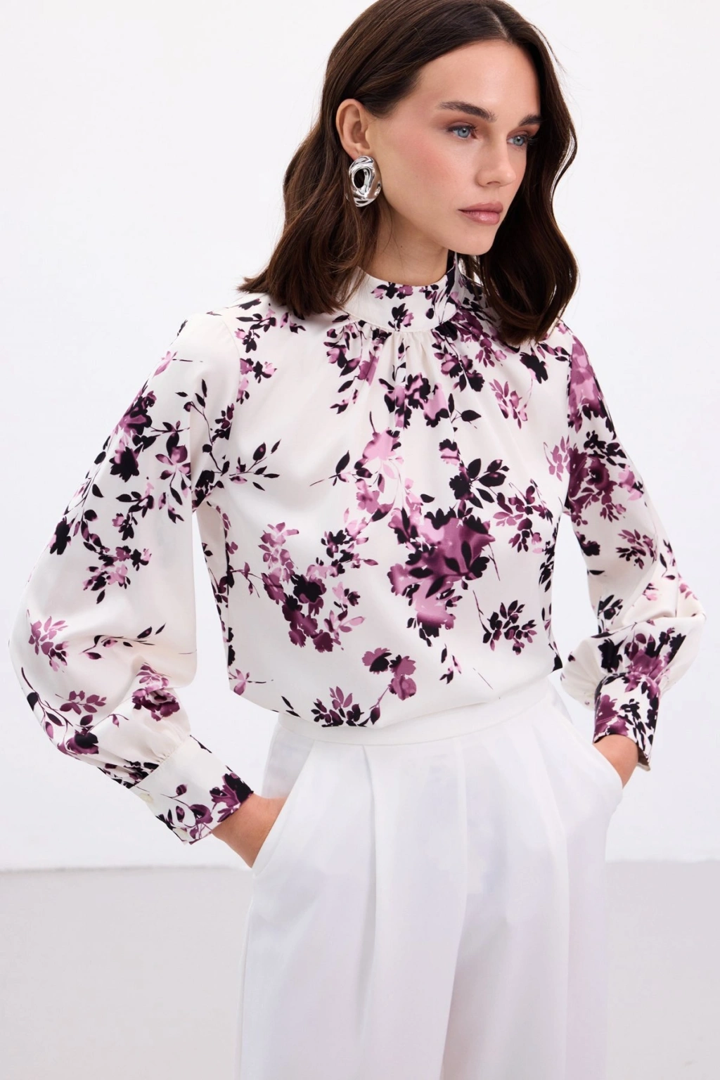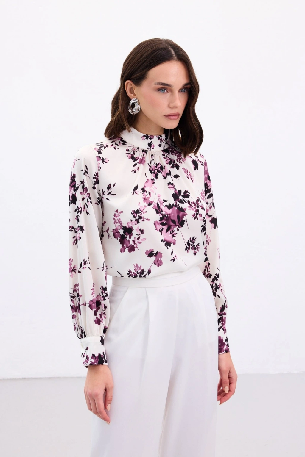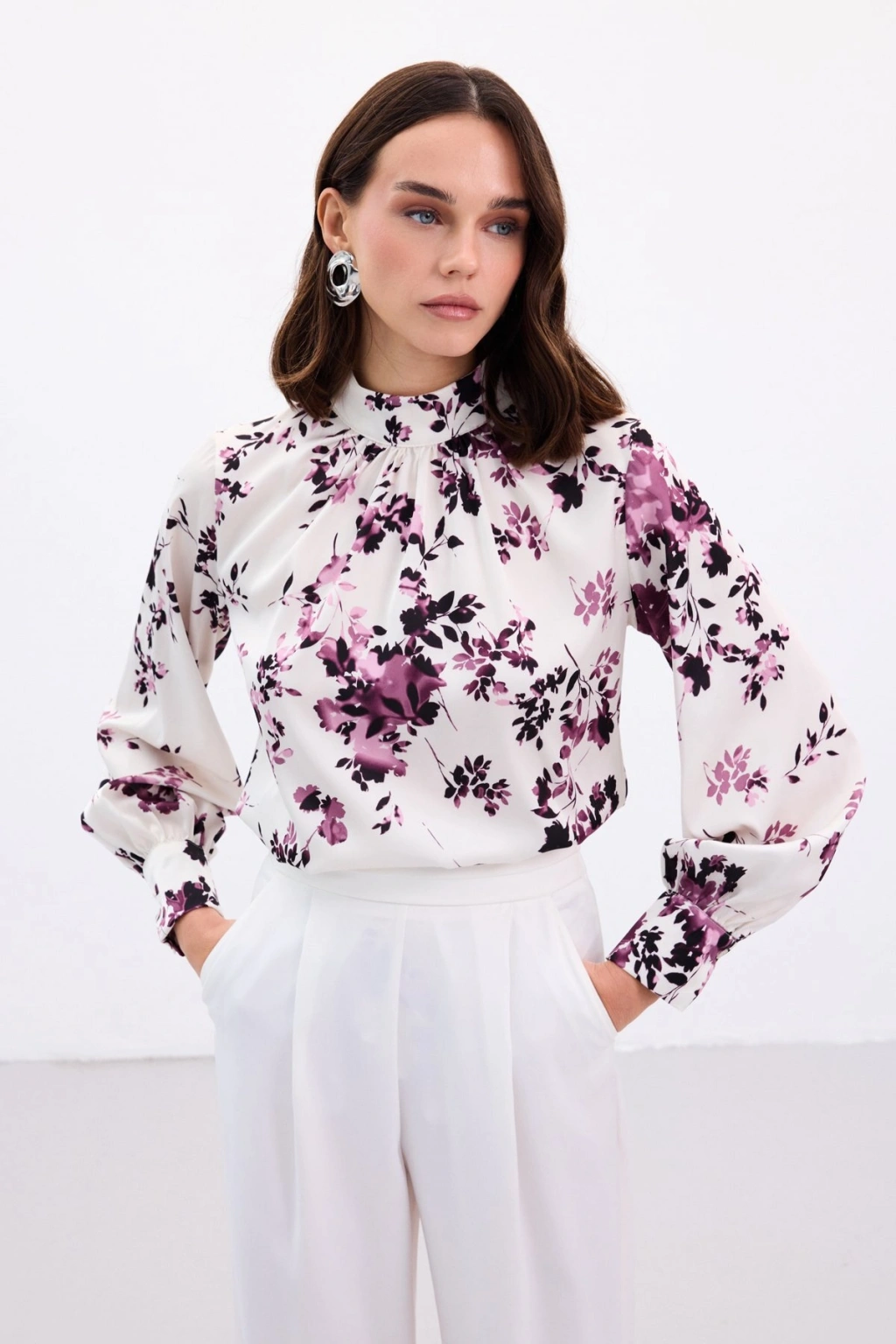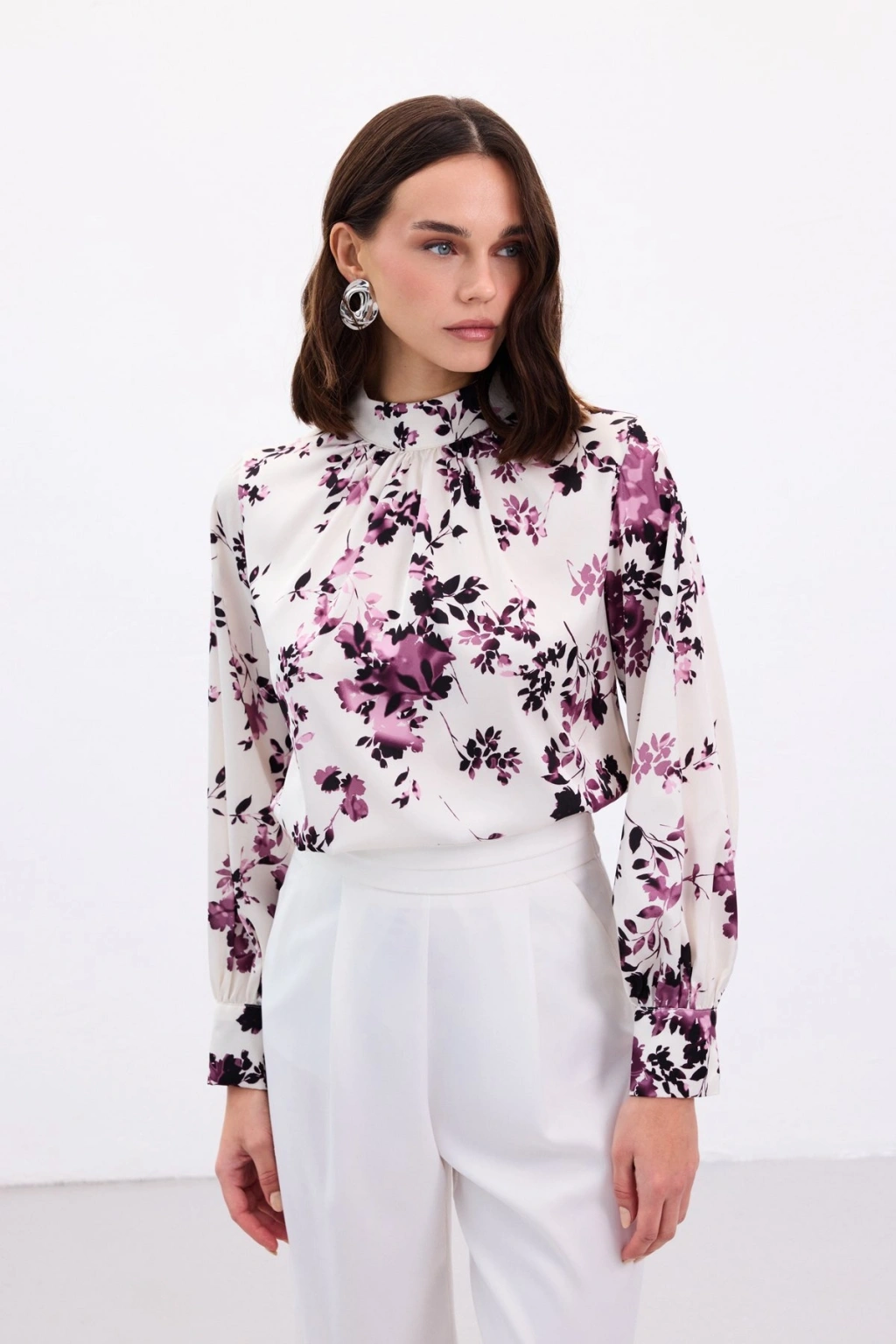 Dik Yaka Bluz - Mürdüm