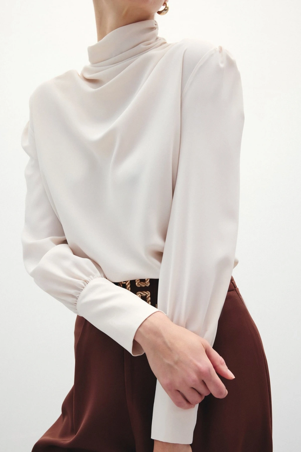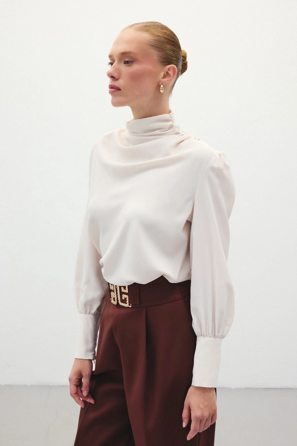 Drape Detaylı Bluz - Bej