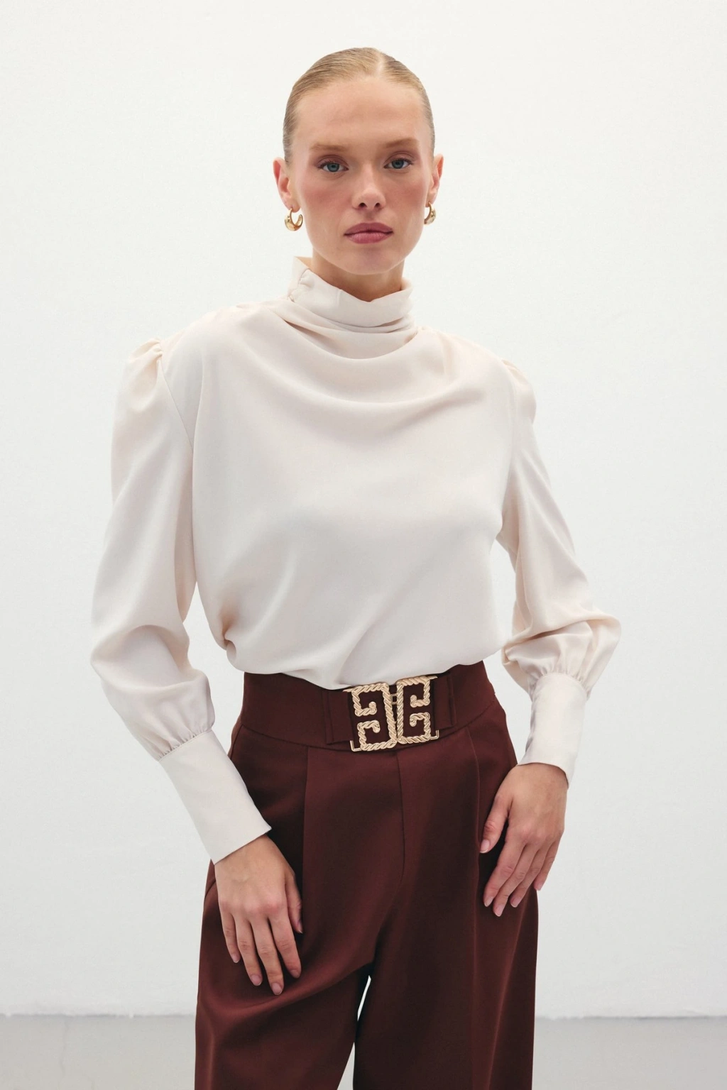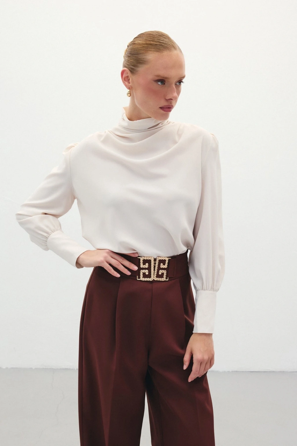 Düğüm Detaylı Bluz Ekru