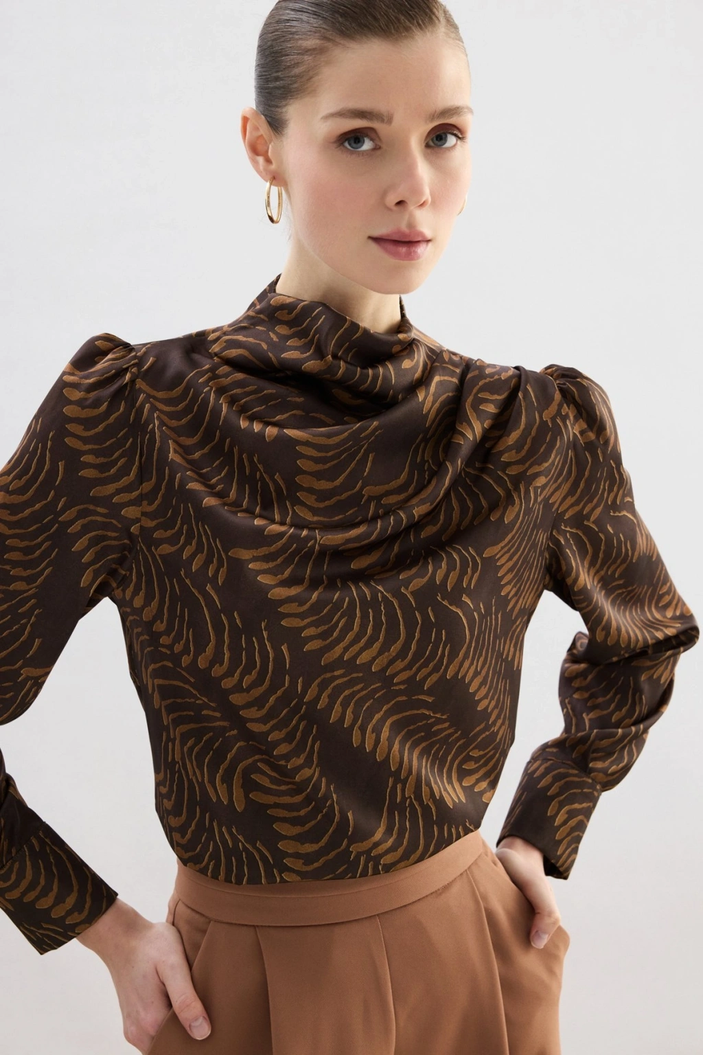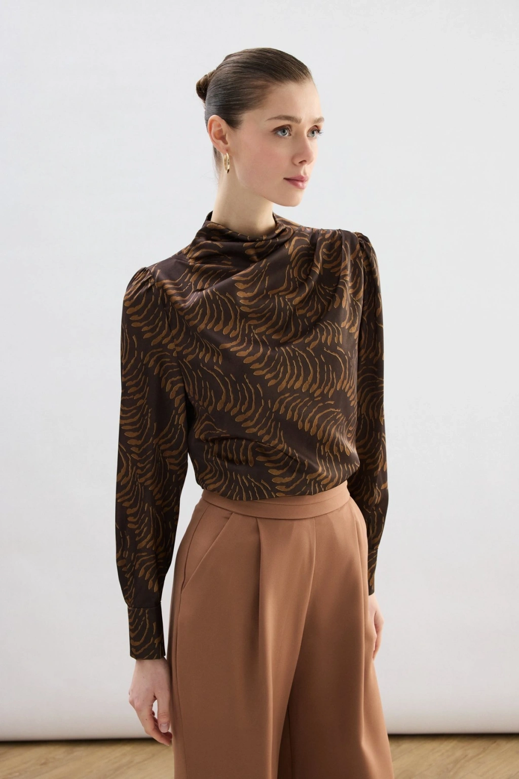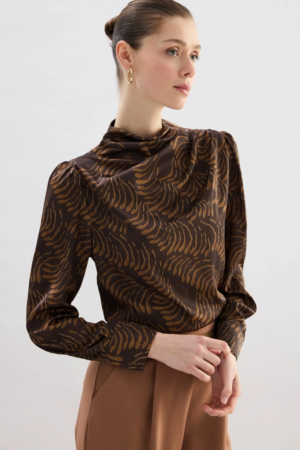Puantiye Desenli Salaş Bluz - Bej-Kahve