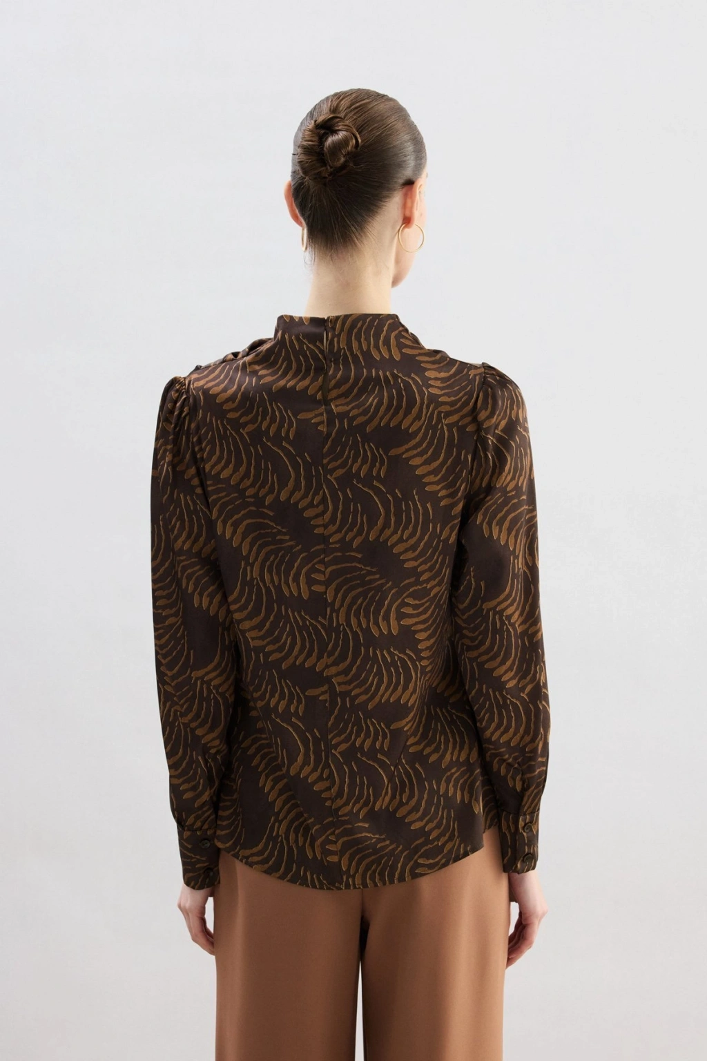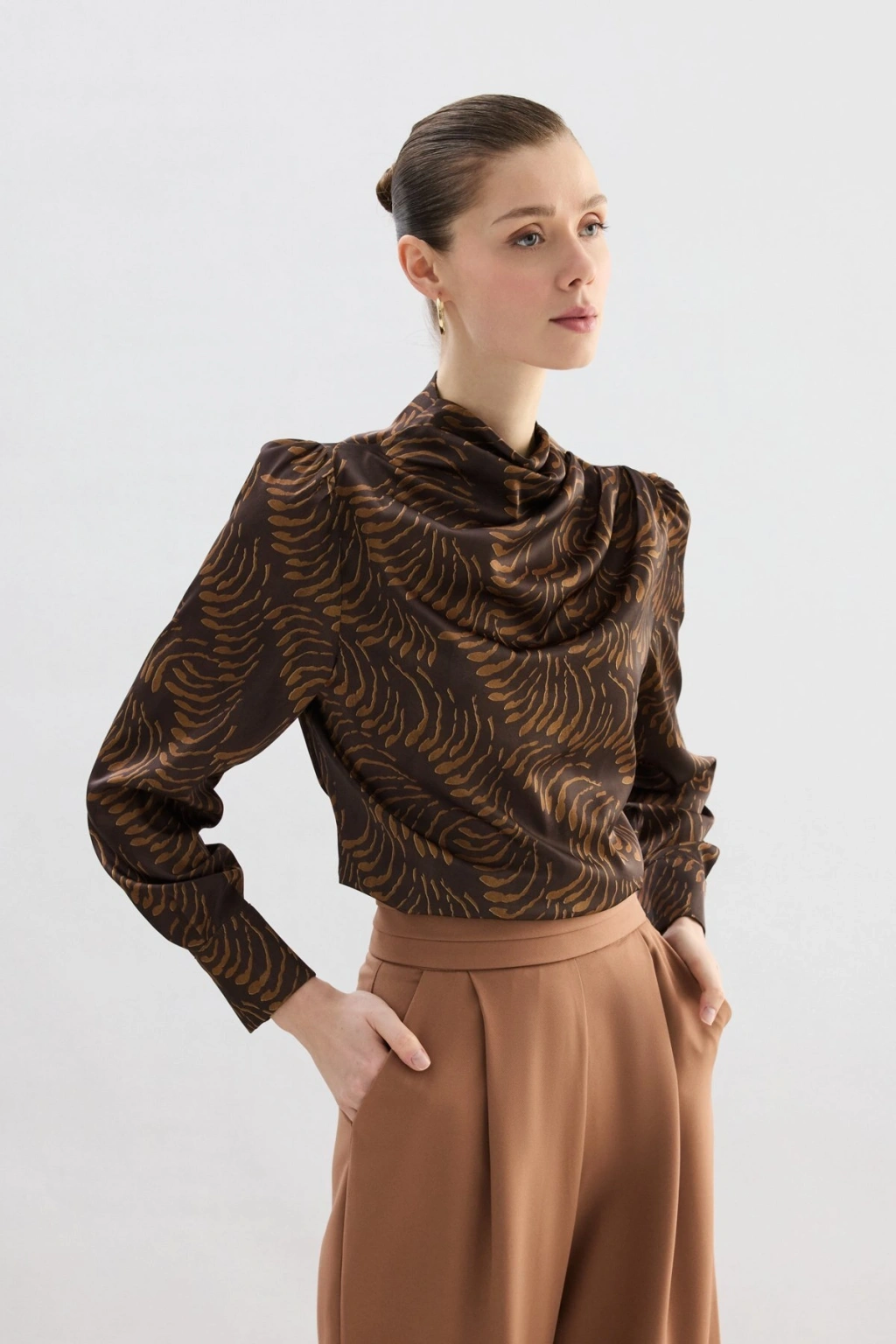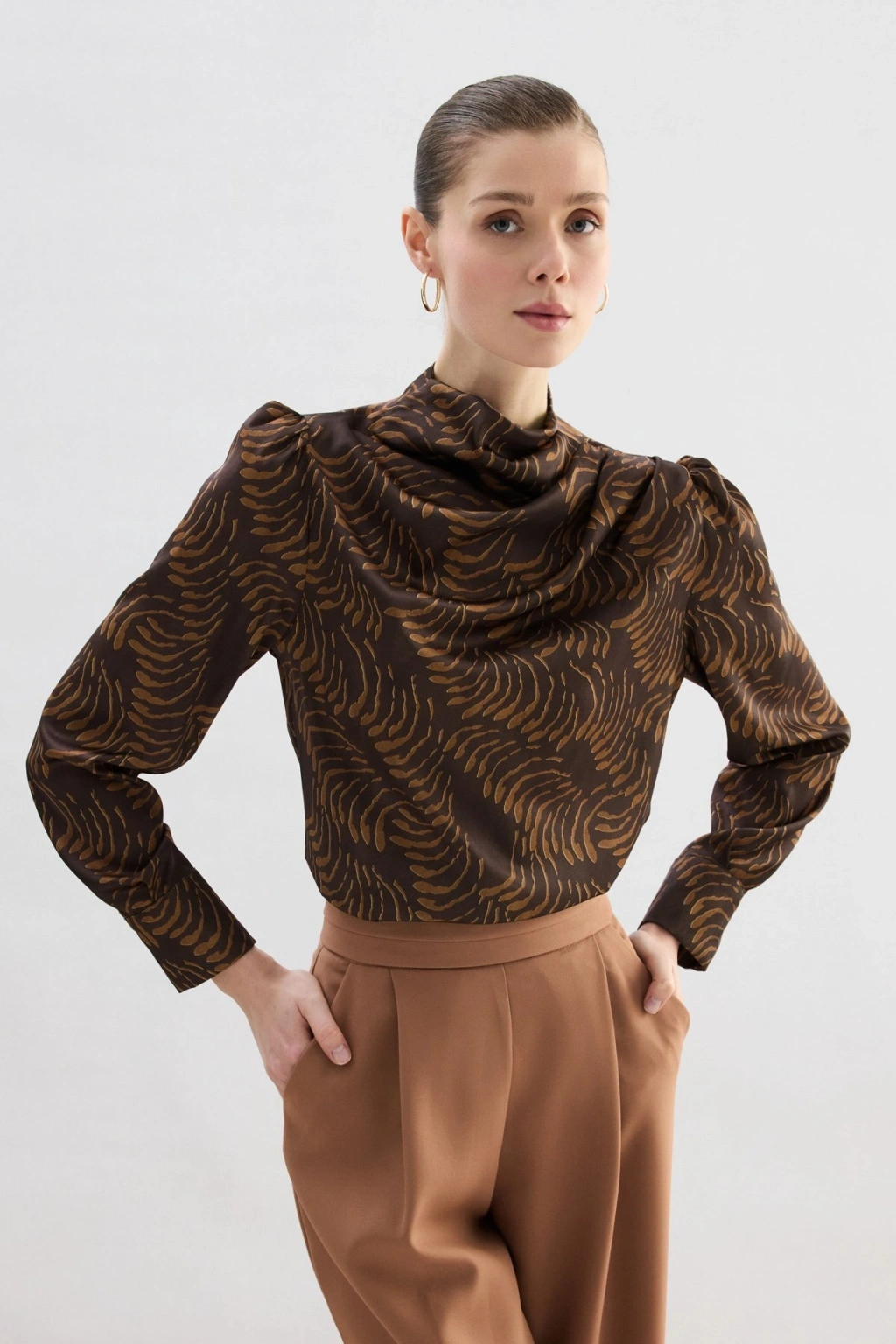 Puantiye Desenli Salaş Bluz - Bej-Kahve