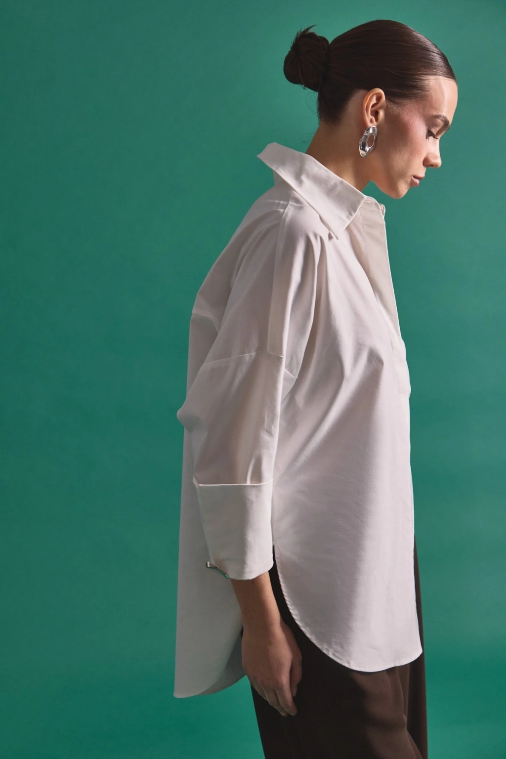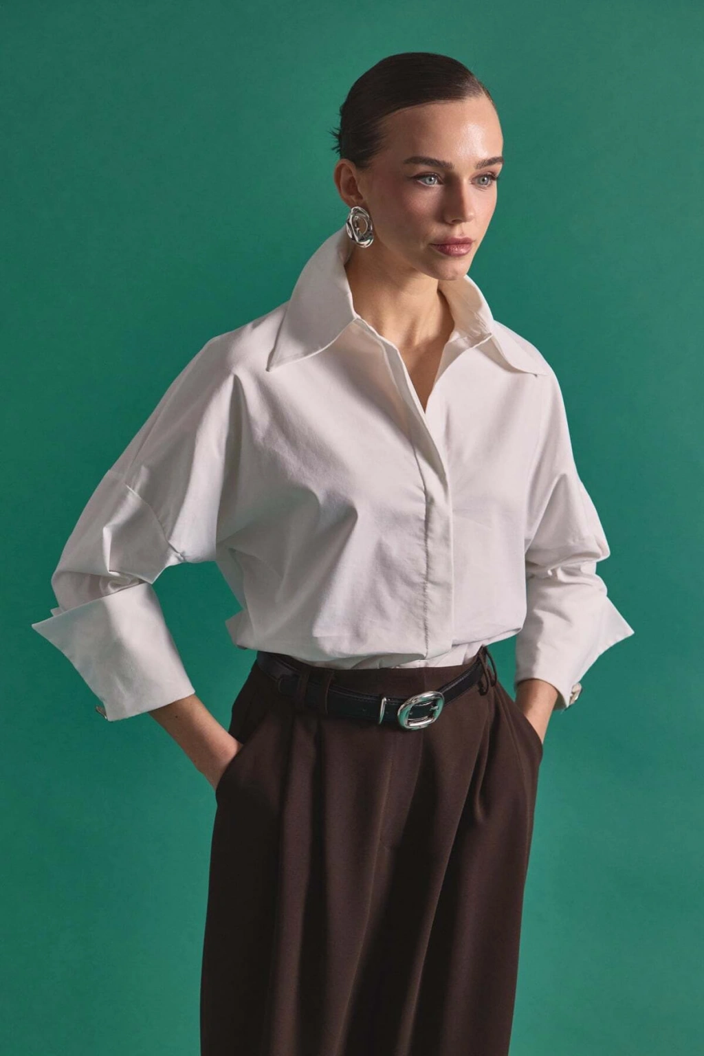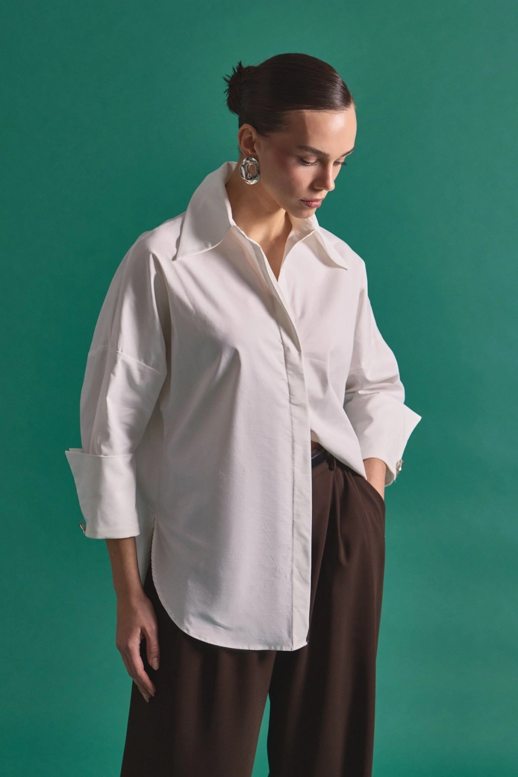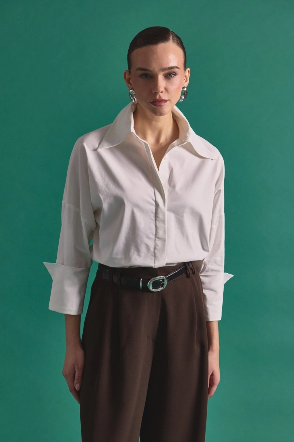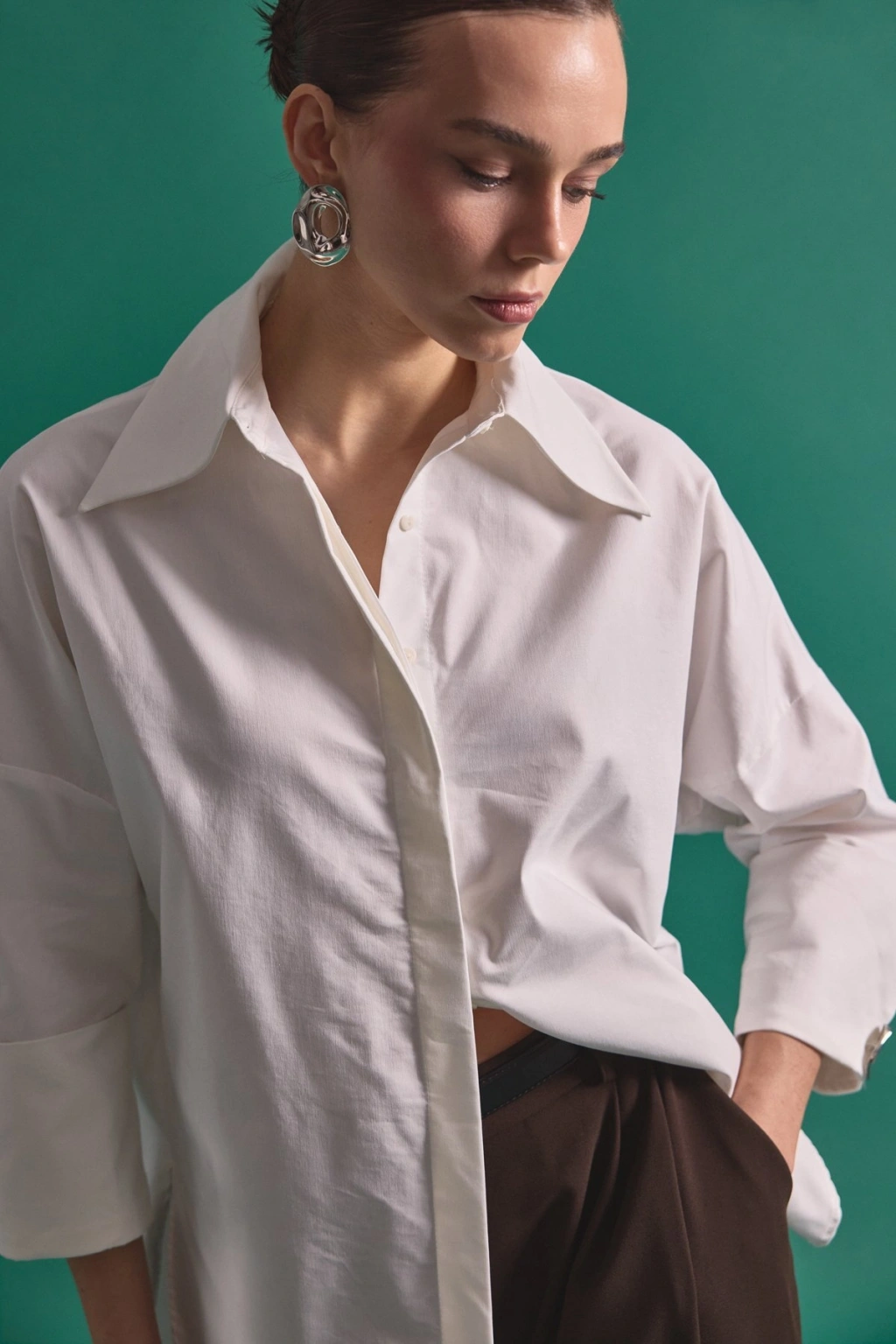 Zincir Aksesuarlı Düz Gömlek - Ekru